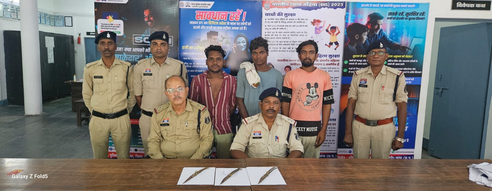 थाना चांपा प्रभारी निरीक्षक जयप्रकाश गुप्ता के नेतृत्व में पुलिस टीम को गश्त के दौरान मुखबिर से सूचना मिली कि कुछ युवक संदिग्ध हालत में हथियार लिए घूम रहे हैं। सूचना की पुष्टि होते ही पुलिस टीम ने त्वरित घेराबंदी कर तीनों आरोपियों को अलग-अलग स्थानों से गिरफ्तार कर लिया। आरोपियों के पास से तीन नग बटनदार चाकू बरामद किए गए हैं।