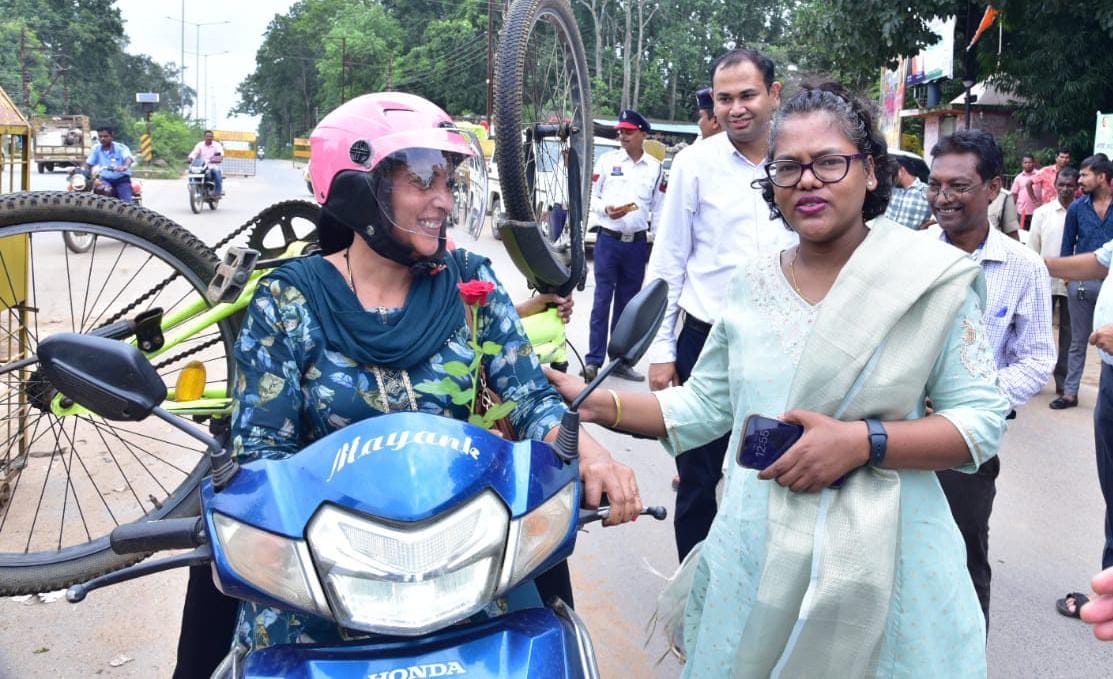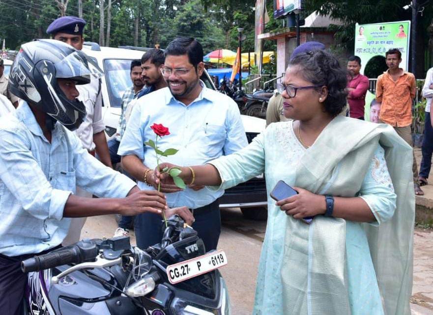 जिला प्रशासन कोंडागांव द्वारा सड़क सुरक्षा को लेकर जन जागरूकता हेतु स्थानीय फॉरेस्ट नाका मर्दापाल चौक में विशेष अभियान चलाया गया। जहाँ कलेक्टर श्रीमती नूपुर राशि पन्ना ने बिना हेलमेट चलाने वाले दोपहिया वाहन चालकों को निःशुल्क हेलमेट वितरित किए। कार्यक्रम में कलेक्टर ने हेलमेट पहनने वाले जिम्मेदार वाहन चालकों और कार में सीट बेल्ट लगाकर यात्रा करने वालों की सराहना करते हुए उन्हें गुलाब का फूल भेंट कर सम्मानित किया। उन्होंने कहा कि हेलमेट और सीट बेल्ट जीवन रक्षा के लिए अत्यंत आवश्यक हैं। कलेक्टर ने स्थानीय लोगों से आग्रह किया कि वे सभी यातायात नियमों का अनिवार्य रूप से पालन करें और न केवल अपनी, बल्कि अन्य यात्रियों और राहगीरों की सुरक्षा का भी ध्यान रखें। कार्यक्रम में राहगीरों और वाहन चालकों को सड़क सुरक्षा संबंधी नियमों की भी जानकारी भी दी गई। इस अवसर पर कुल 50 हेलमेट वितरित किए गए, साथ ही 12 सड़क सुरक्षा मित्रों को भी हेलमेट प्रदान कर उनकी भूमिका की सराहना की गई। इस दौरान जिला पंचायत सीईओ अभिनाश भोई, अपर कलेक्टर चित्रकांत चाली ठाकुर, जिला परिवहन अधिकारी अतुल असैया, यातायात प्रभारी मुकेश जोशी, मुख्य नगरपालिका अधिकारी दिनेश डे सहित अन्य अधिकारी-कर्मचारी उपस्थित थे।