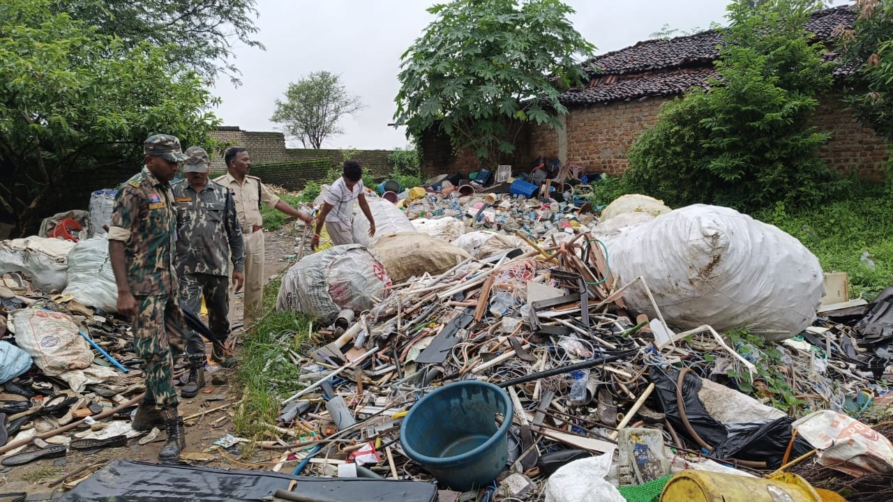 पुलिस टीम द्वारा सुबह सुबह कबाड़ गोदाम मे पहुंचकर रखे हुए सामानो की कि गई जांच।