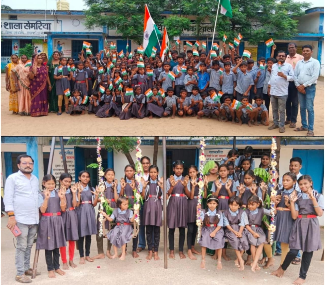 छत्तीसगढ़ शासन के निर्देशानुसार “हर घर तिरंगा” अभियान के अंतर्गत शासकीय प्राथमिक एवं पूर्व माध्यमिक शाला सेमरिया में छात्र-छात्राओं द्वारा एक भव्य जागरूकता तिरंगा रैली का आयोजन किया गया। इस रैली के माध्यम से न केवल ग्रामवासियों को स्वतंत्रता, स्वच्छता और राष्ट्रध्वज के महत्व की जानकारी दी गई, बल्कि बच्चों के मन में राष्ट्रभक्ति की भावना भी प्रबल हुई।