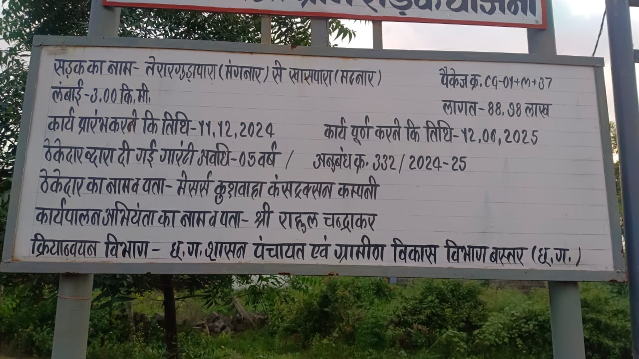 प्रधानमंत्री ग्राम सड़क योजना के तहत बकावंड विकासखंड की ग्राम पंचायत मंगनार में तेरारगुड़ा पारा से खासपारा मटनार तक सड़क निर्माण कार्य में घोर लापरवाही सामने आई है। 3 किलोमीटर लंबी इस सड़क का डामरीकरण कार्य समय सीमा समाप्त होने के बाद भी अधूरा पड़ा है, जिससे ग्रामीणों को भारी परेशानी का सामना करना पड़ रहा है। 88.98 लाख रुपए की लागत से स्वीकृत इस सड़क का निर्माण कार्य 11 दिसंबर 2024 से शुरू होना था और 12 जून 2025 तक इसे पूर्ण कर लिया जाना था। सड़क निर्माण का ठेका मेसर्स कुशवाहा कंस्ट्रक्शन कंपनी को दिया गया है, लेकिन निर्धारित समय सीमा बीतने के बावजूद डामरीकरण का कार्य अधर में लटका हुआ है।