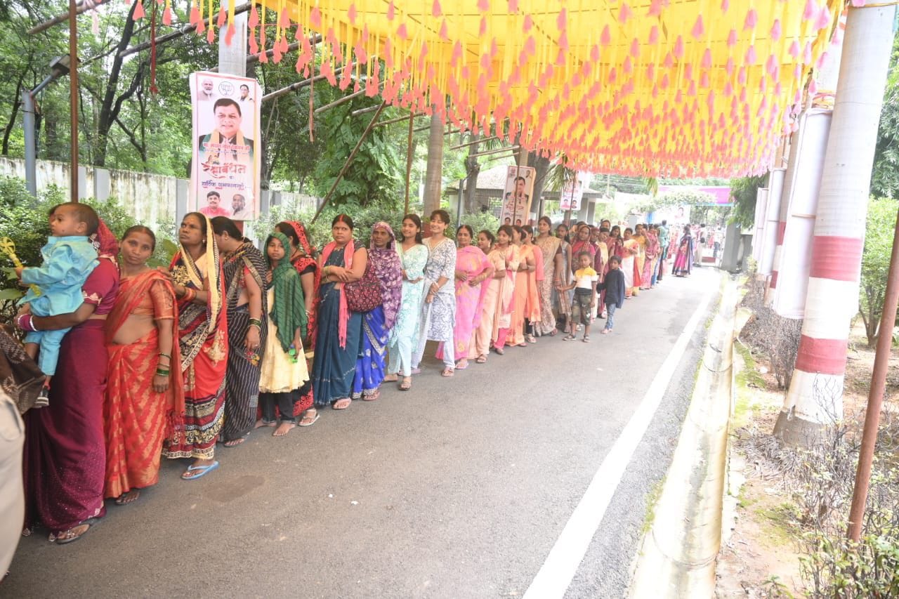 मंत्री देवांगन हर बहन को मुस्कुराकर प्रणाम कर रहे थे, बच्चों को दुलार रहे थे और बुजुर्ग माताओं के पैर छूकर आशीर्वाद ले रहे थे। मंत्री की कलाई पर सैकड़ों रंग-बिरंगी राखियाँ लिपट चुकी थीं,हर धागे में आशीर्वाद, हर रंग में विश्वास और हर मुस्कान में भाई-बहन के अटूट बंधन दिखाई पड़ रहा था।