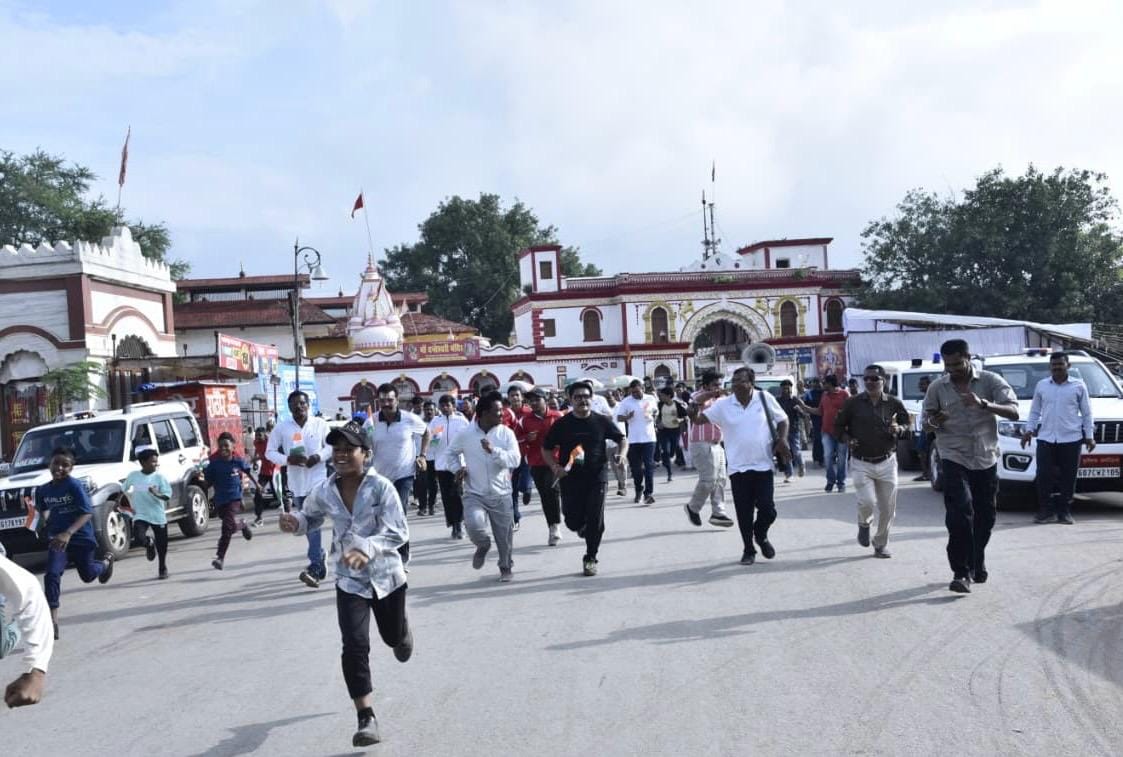 जगदलपुर। बस्तर की आराध्य देवी मां दंतेश्वरी मंदिर प्रांगण से गुरुवार की सुबह स्वतंत्रता तिरंगा दौड़ का आयोजन किया गया। इस दौड़ को सांसद बस्तर महेश कश्यप ने हरी झंडी दिखाकर प्रारंभ किया। इस दौड़ में महापौर संजय पांडेय, गणमान्य जनप्रतिनिधियों, कमिश्नर डोमन सिंह, कलेक्टर हरिस एस, पुलिस अधीक्षक शलभ सिन्हा सहित प्रशासन के अधिकारी-कर्मचारी, बड़ी संख्या में स्कूली छात्र-छात्राएं, एनसीसी और स्काउट-गाईड के कैडेट्स, एसडीआरएफ के जवान और नागरिक शामिल हुए।