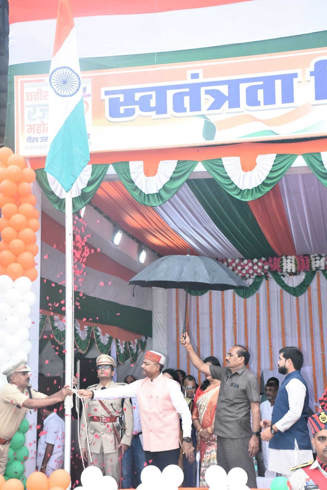 स्व. सरयू प्रसाद अग्रवाल स्टेडियम में आयोजित समारोह में मंत्री श्री केदार कश्यप ने ध्वजारोहण कर परेड की ली सलामी