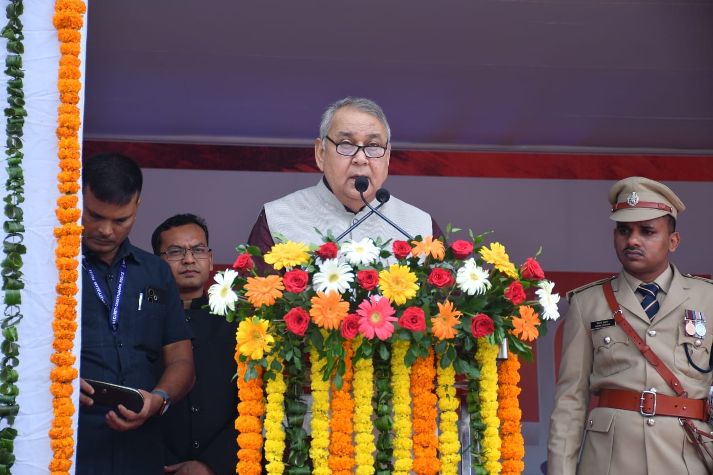 समारोह में नक्सल उन्मूलन अभियान में शहीद जवानों के परिजनों को मुख्य अतिथि द्वारा शॉल एवं श्रीफल भेंटकर सम्मानित किया गया। विभिन्न विभागों में उत्कृष्ट कार्य करने वाले अधिकारी-कर्मचारियों को प्रशस्ति पत्र प्रदान किए गए, जिनमें पुलिस, शिक्षा, स्वास्थ्य और अन्य विभागों के कर्मी शामिल थे। इसके पश्चात विभिन्न स्कूल के छात्र-छात्राओं के द्वारा रंगारंग सांस्कृतिक कार्यक्रमों की प्रस्तुति दी गई।