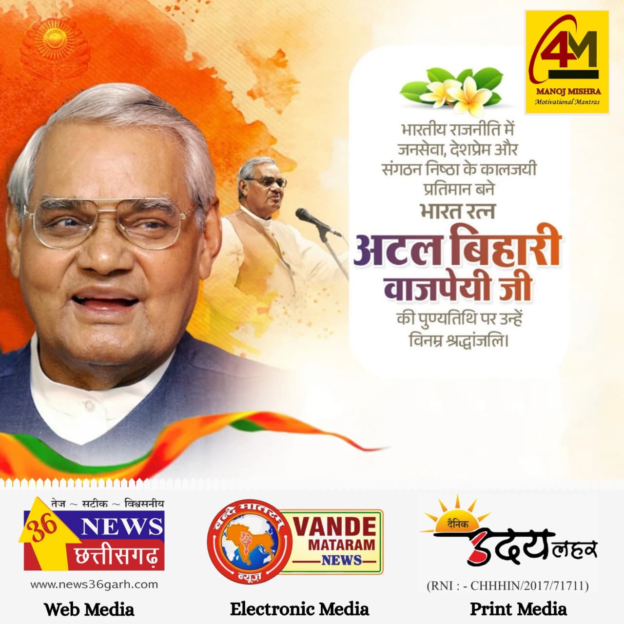 आज, 16 अगस्त 2025 को, भारत के पूर्व प्रधानमंत्री और भारत रत्न अटल बिहारी वाजपेयी जी की पुण्यतिथि है। उनकी स्मृति में देशभर में श्रद्धांजलि कार्यक्रम आयोजित किए जा रहे हैं।
