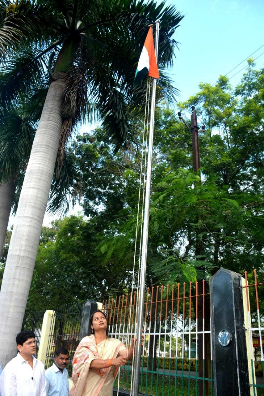 जांजगीर-चांपा 15 अगस्त 2025/ 79 वें स्वतंत्रता दिवस के अवसर पर जिला पंचायत परिसर में जिला पंचायत अध्यक्ष श्रीमती सत्यलता आनंद मिरी ने गर्व, आन-बान और शान के साथ तिरंगा फहराया। इस अवसर पर जिला पंचायत उपाध्यक्ष श्री गगन जयपुरिया, सदस्य श्री राजकुमार साहू, सुश्री आशा साव, श्रीमती उर्मिला यादव, श्री महादेव नेताम, श्रीमती प्रमिला अजय साहू, जिला पंचायत सीईओ श्री गोकुल कुमार रावटे, उप संचालक पंचायत श्री अभिमन्यु साहू सहित जनप्रतिनिधि, अधिकारी एवं कर्मचारी उपस्थित रहे।