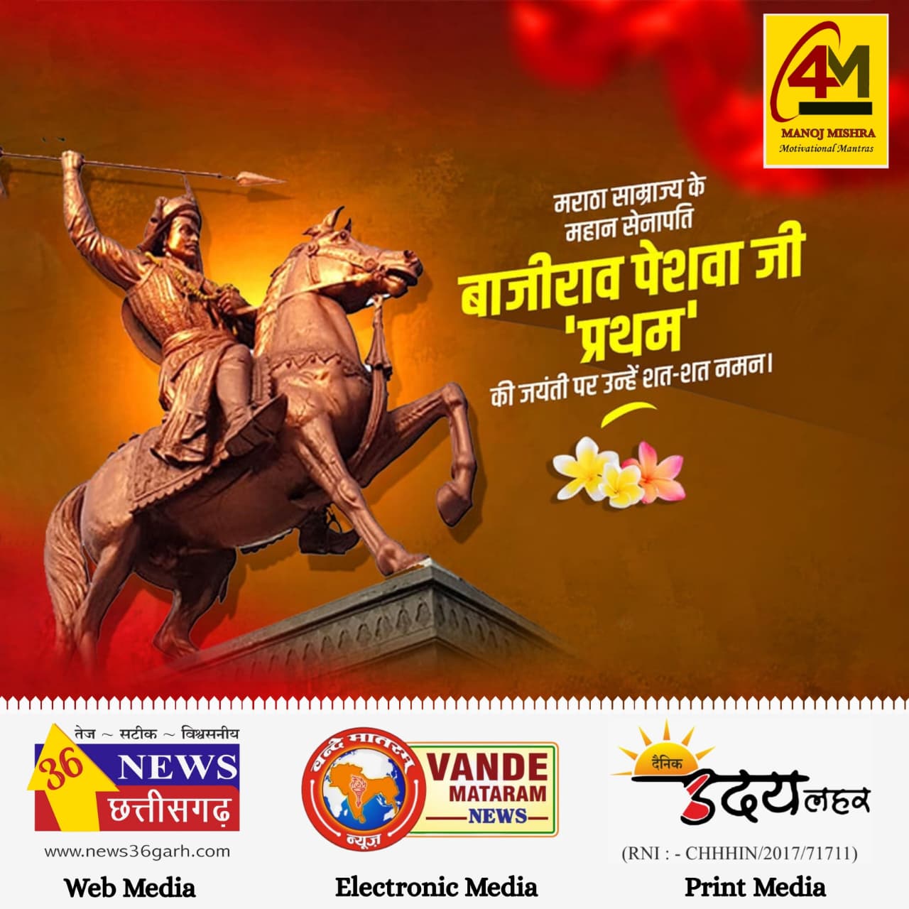 Home मुख्य ख़बरें अपराजेय योद्धा बाजीराव पेशवा प्रथम: वीरता, रणनीति और राष्ट्रभक्ति का प्रतीक