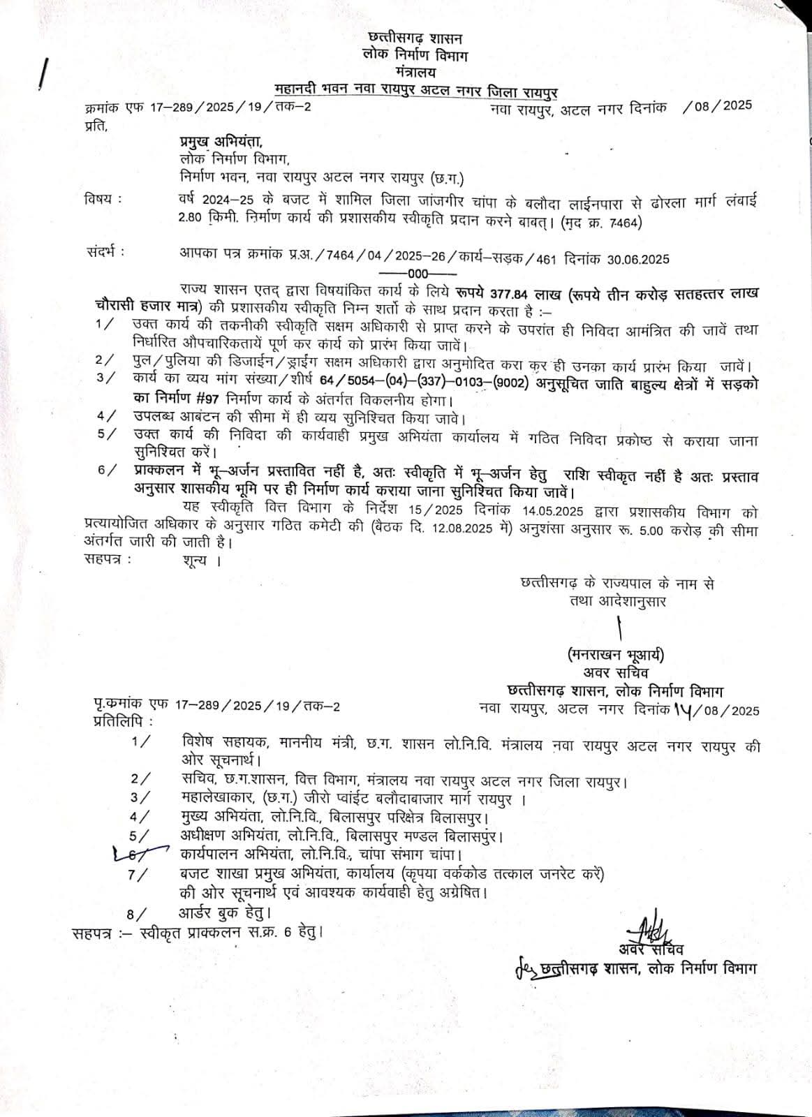 2️⃣ मुख्य मार्ग से बछोद–चंदनिया पहुंच मार्ग