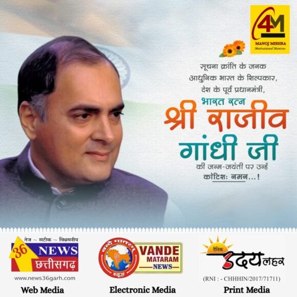 आज उनकी जयंती पर हम राजीव गांधी को सिर्फ एक पूर्व प्रधानमंत्री के रूप में नहीं, बल्कि युवाओं के प्रेरणास्रोत और आधुनिक भारत की नींव रखने वाले दूरदर्शी नेता के रूप में याद करते हैं। उन्होंने भारतीय लोकतंत्र को नई दिशा दी, तकनीक और विकास के रास्ते खोले और युवाओं को भविष्य गढ़ने का भरोसा दिया।