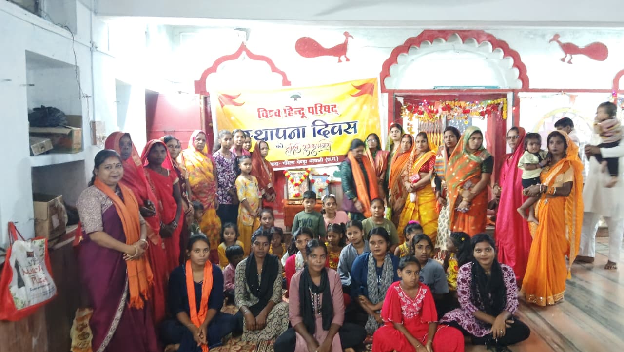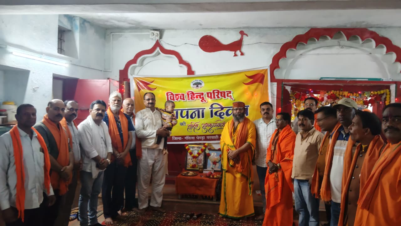 विश्व हिंदू परिषद – मरवाही प्रखंड द्वारा संगठन का स्थापना दिवस रविवार को श्री राम जानकी मंदिर, कोटमी में अत्यंत श्रद्धा, भक्ति और उत्साह के साथ मनाया गया। कार्यक्रम में बड़ी संख्या में धर्मप्रेमी बंधु-भगिनियों ने भाग लेकर हिंदू एकता, सेवा और संस्कृति रक्षण के संकल्प को दोहराया।