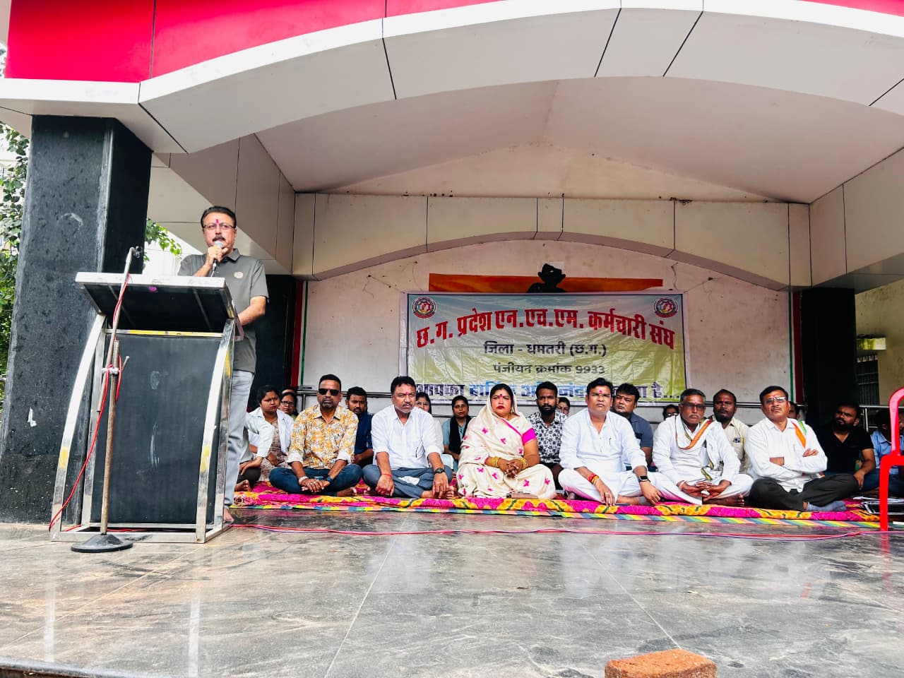 धमतरी। छत्तीसगढ़ एन.एच.एम प्रदेश कर्मचारी संघ द्वारा गांधी मैदान, धमतरी में अपनी न्यायोचित मांगों को लेकर चलाए जा रहे शांतिपूर्ण धरने में आज विधायक ओंकार साहू तथा जिला कांग्रेस अध्यक्ष शामिल हुए।