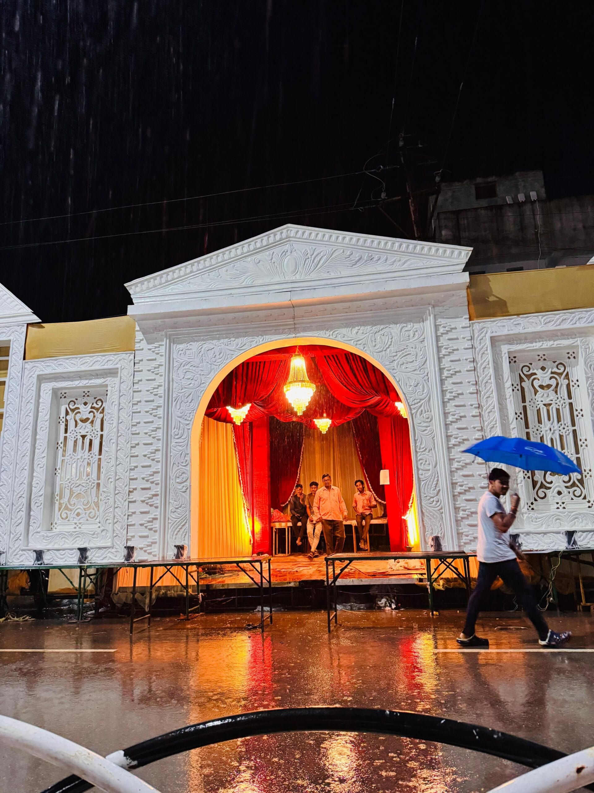 एमिरेट्स थीम: पूरे पंडाल को आधुनिक और भव्य एमिरेट्स थीम में सजाया गया है, जो देखने में बेहद आकर्षक और अनूठा है।