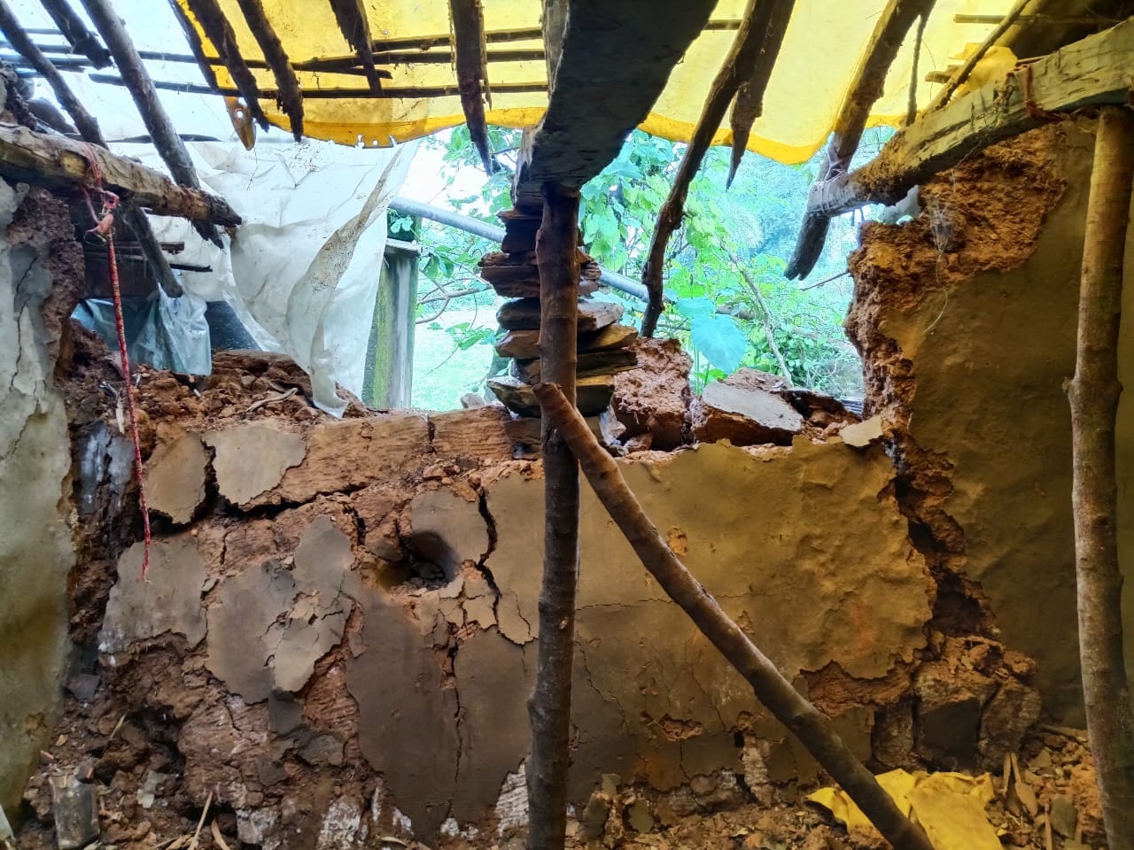 -बारिश में ढहा अभागन का मकान, एक दिन पहले ही हुई थी पति की मौत