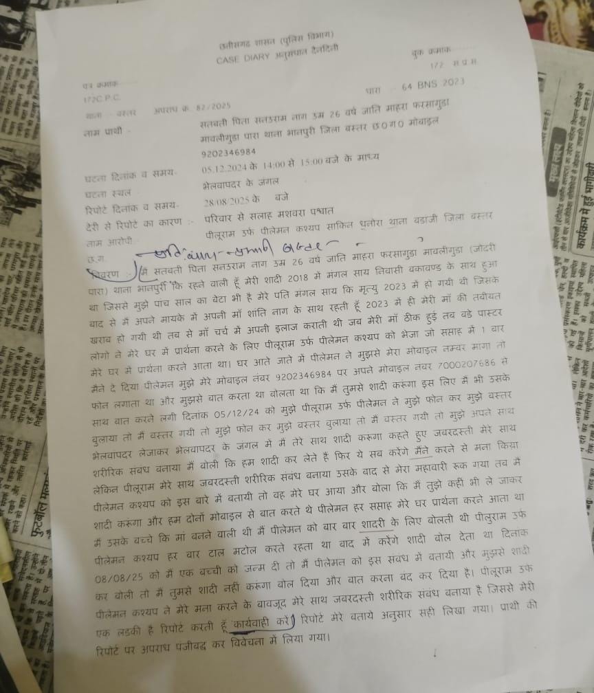 संस्कृति और परंपराओं पर आक्रमण करने वाले कुछ तत्व अब बस्तर की आदिवासी बहू बेटियों की अस्मत पर भी हमला करने लगे हैं। ऐसा ही एक मामला बस्तर जिले भानपुरी थाना क्षेत्र के बड़ांजी गांव से सामने आया है। एक तथाकथित पास्टर ने एक बीमार महिला की बीमारी प्रार्थना के जरिए ठीक कर देने का झांसा देते हुए उस महिला की विधवा बेटी को अपनी हवस का शिकार बनाता रहा। जब युवती गर्भवती हो गई तो उस पर धर्म परिवर्तन और गर्भपात के लिए आरोपी दबाव बनाने लगा। बताया गया है कि आरोपी पीलूराम बघेल खुद कन्वर्टेड है और गांव के बाहर प्रार्थना सभा करवाता था। दुष्कर्म पीड़िता की मां बीमार चल रही है। पीलू राम ने बीमार महिला और उसकी युवा बेटी को झांसे में ले लिया कि वह प्रार्थना के जरिए महिला को स्वस्थ कर देगा। वह मां बेटी को चर्च ले जाता था और घर मे रविवार को प्रार्थना करवाता था। इस तरह पीलूराम ने बेटी को प्रेमजाल में फंसा लियाया और उसके साथ दुष्कर्म करने लगा। पीड़िता के गर्भवती हो जाने पर उसे ईसाई धर्म अपनाने और गर्भपात कराने के लिए उस पर का लगातार दबाव बनाता रहा।
