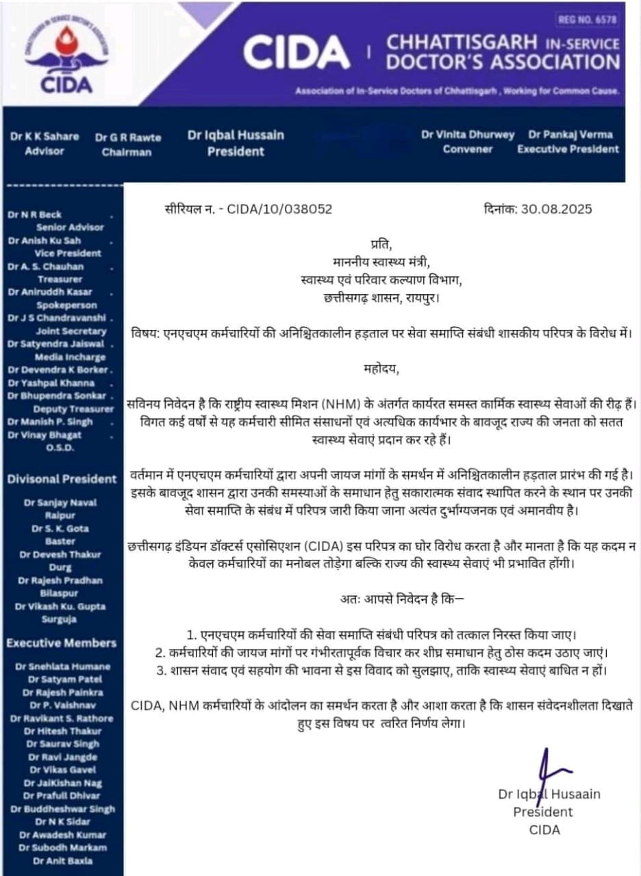 CIDA ने दिया समर्थन बताया सेवा समाप्ति नोटिस को अमानवीय