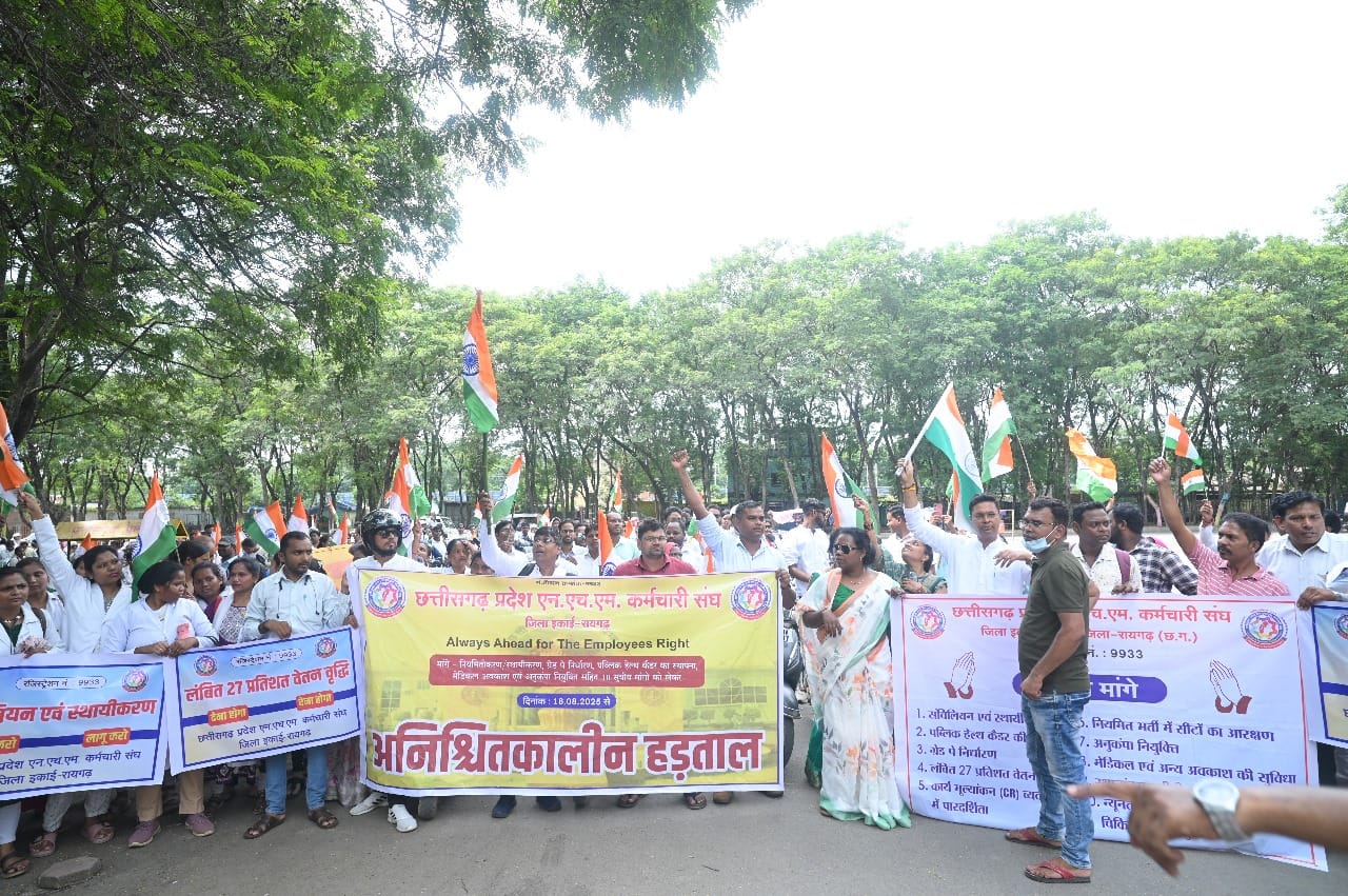 माननीय सरकार, सुन लीजिए! रायगढ़ की सड़कों पर एनएचएम कर्मचारियों की तिरंगा बाइक यात्रा कोई जश्न नहीं, बल्कि 20 साल के शोषण और वादाखिलाफी का गुस्सा है। 500 से ज्यादा कर्मचारी सड़कों पर उतर आए हैं, नोटिस की प्रतियां जलाकर कह रहे हैं, “आश्वासन की खोखली बातें बंद, लिखित आदेश दिखाओ!” 29 साथियों की जान जा चुकी है, फिर भी सरकार के कानों पर जूं नहीं रेंग रही।