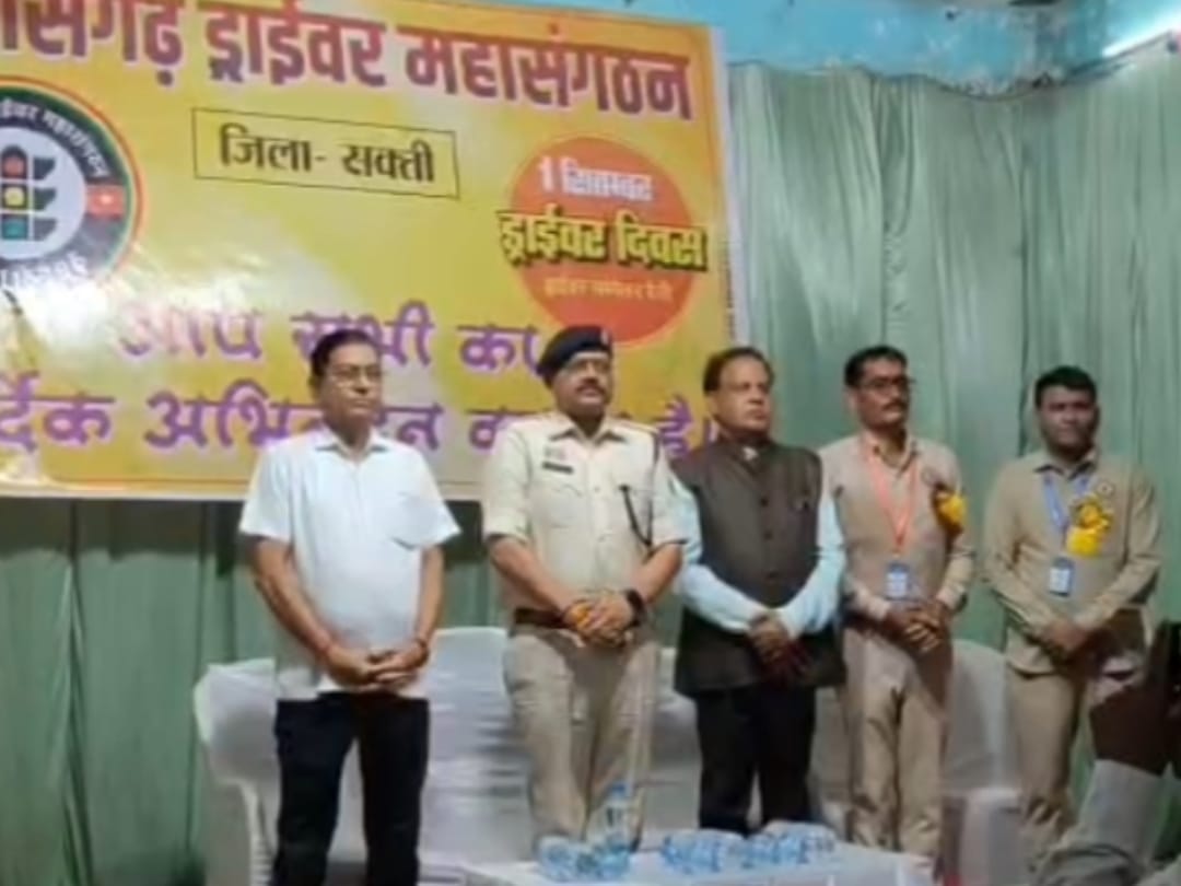छत्तीसगढ़ ड्राइवर महासंगठन के द्वारा ड्राइवर दिवस पर सैकड़ों की संख्या में नगर प्रमुख मार्गों से होते हुए जय भारती_जय सारथी, ड्राइवर एकता जिंदाबाद…के उद्घोष के साथ रैली निकाली गई जो नगर भ्रमण करते हुए समारोह स्थल पंडित श्यामा प्रसाद मुखर्जी सामुदायिक भवन सक्ती में सभा के रूप में तब्दील हो गई जहां पर कार्यक्रम के मुख्य अभ्यागत अतिरिक्त पुलिस अधीक्षक हरीश यादव तथा कार्यक्रम की अध्यक्षता कर रहे ड्राइवर संगठन के संरक्षक उच्च न्यायालय अधिवक्ता चितरंजय पटेल के कर कमलों से भारत माता के चित्र पर माल्यार्पण एवं दीप प्रज्वलन एवं पूजन के साथ मंचीय कार्यक्रम का शुभारंभ हुआ। पश्चात ड्राइवर महा संगठन के पदाधिकारियों ने मंचासिन अतिथियों का पुष्प गुच्छ एवं वस्त्र भेंटकर अभिनन्दन किया।