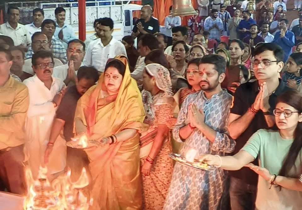 महा आरती में महापौर श्रीमती मंजूषा भगत, जिला पंचायत सदस्य श्रीमती दिव्या सिंह सिसोदिया, आदितेश्वर शरण सिंहदेव,सभापति हरमिंदर सिंह टिन्नी, आईजी दीपक कुमार झा, अतिरिक्त पुलिस अधीक्षक अमोलक सिंह ढिल्लो, अरुणा सिंह, एच एस जायसवाल, राजीव अग्रवाल, नीलेश सिंह, अध्यक्ष शैलेश सिंह शैलू, गोल्डी बिहाड़े, द्वितेन्द्र मिश्रा, जनमेजय मिश्रा, रूपेश दुबे, संतोष दास, विकास पाण्डेय, जितेंद्र सोनी, शशिकांत जायसवाल, शरद सिन्हा, अंशुल श्रीवास्तव, अनीश सिंह, जतीन परमार, मैंगो यादव, प्रियंका चौबे, नीलम राजवाड़े, अजय सिंह सहित बड़ी संख्या में श्रद्धालु विशेष रूप से उपस्थित रहे।।