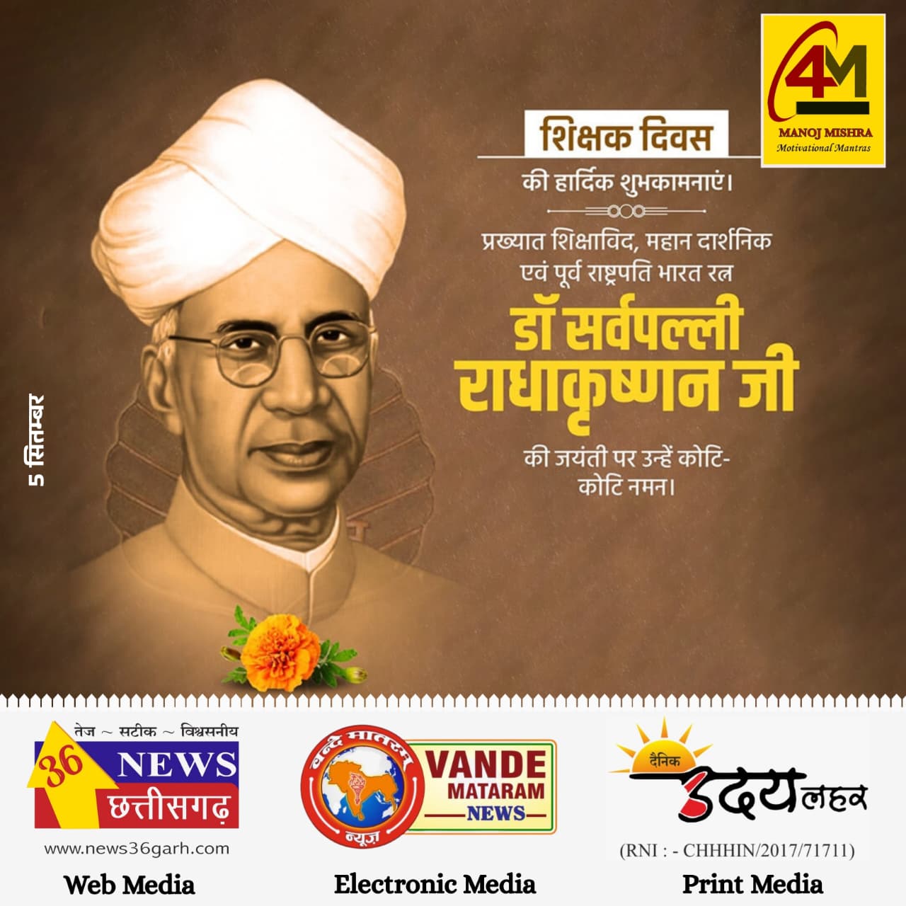 आज के दिन हम न केवल डॉ. राधाकृष्णन को श्रद्धांजलि अर्पित करते हैं, बल्कि उन सभी शिक्षकों को भी धन्यवाद कहते हैं जो हमारे जीवन को दिशा देते हैं।