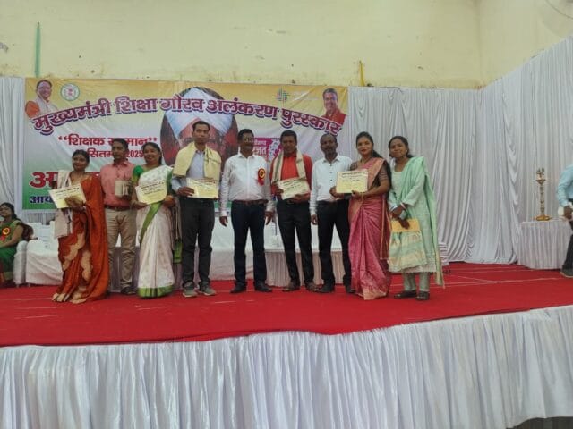जगदलपुर। शिक्षक दिवस के अवसर पर प्राथमिक शाला खैरगुड़ा के प्रधान अध्यापक छन्नू राम मंडावी को श्यामा प्रसाद मुखर्जी सभागार टाऊन हॉल जगदलपुर में मुख्यमंत्री शिक्षा गौरव अलंकरण शिक्षा दूत पुरूस्कार से भारतीय जनता पार्टी प्रदेशाध्यक्ष एवं जगदलपुर विधायक किरण देव और महापौर संजय पांडे के हाथों सम्मानित किया गया ।