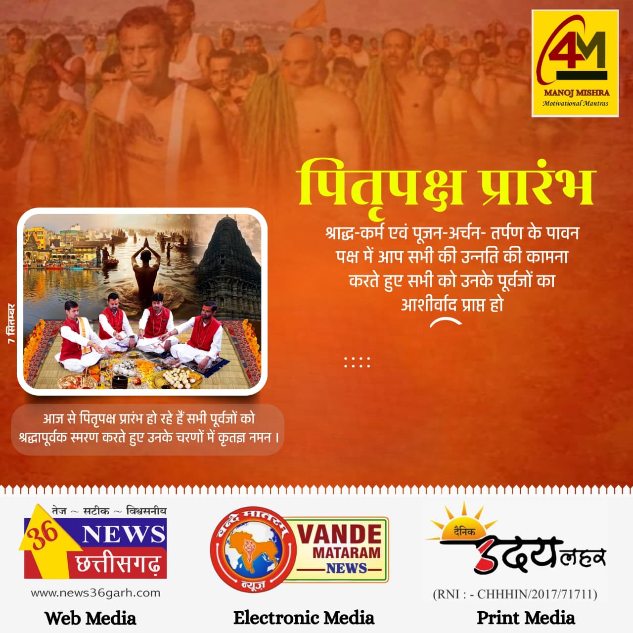 आज 07 सितंबर 2025 को चंद्रग्रहण और पितृपक्ष की शुरुआत एक साथ हो रही है — एक अत्यंत दुर्लभ और पवित्र संयोग माना जाता है ।