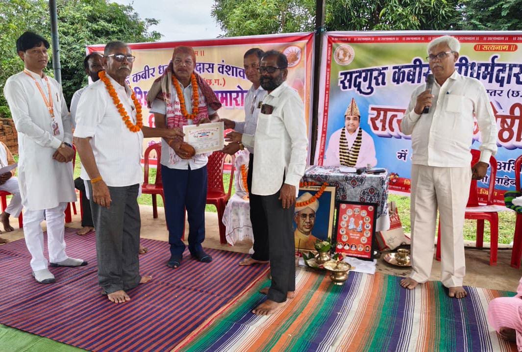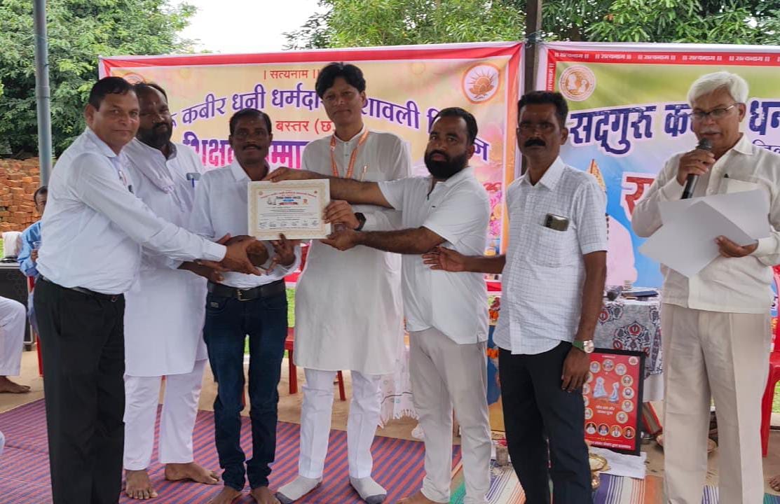 कार्यक्रम में सद्गुरु कबीर धनीधर्मदास वंशावली अभियान जिला बस्तर के जिला प्रतिनिधि श्याम दीवान कबीर पंथी ने उपस्थित शिक्षक, शिक्षिकाओं एवं संतजनों को संबोधित करते हुए कहा कि आदि काल से ही शिष्यों द्वारा अपने गुरुजनों का तन-मन-धन से समर्पित होकर सम्मानित करने की परंपरा रही है। शिक्षकों द्वारा अपने शिष्यों को अक्षर ज्ञान से लेकर मानसिक विकास करते हुए चरित्र निर्माण, मार्गदर्शन व प्रेरणा के साथ नैतिक मूल्यों को समझाते हुए सामाजिक जिम्मेदारी का बोध कराया जाता है। कबीर पंथ में तो कबीर पंथ अनुयायियों द्वारा गुरु को सर्वोच्च प्राथमिकता देते हुए गुरु के मार्गदर्शन में सात्विकता से रहन-सहन, खान-पान व जीवनोपयोगी दिनचर्या का पालन करते हुए सत्य सनातन, मानवीय सद्भावना से विनम्रतापूर्वक प्रेम से समरसता को महत्व देते हैं। कबीर पंथ अनुयायियों आध्यात्मिक गुरु नवोदित वंशाचार्य उदितमुनी नाम साहेब द्वारा स्थापित सद्गुरु कबीर धनिधर्मदास वंशावली मिशन के माध्यम से समस्त प्राणियों पर समभाव रखते हुए दया, करुणा, विश्वास के साथ सदाचार की राह पर चलते हुए भारतीय संस्कृति, मानवीय जीवन मूल्यों के अनुसार सभी के साथ सद् व्यवहार करना है। चारों शिक्षकों को कबीर पंथ के आयोजक अर्जुन प्रधान, श्याम दीवान, रतनूदास, पवनदास, तुलेशदास, सरोवर दास, महंत लक्ष्मीकांत, बुदरुदास, गिरधरदास गणेश दास, बिधियाधर दास पूनमदास, अनिलदास, श्रीमती हीरामनी आदि द्वारा शाल ओढ़ाकर नारियल,पेन एवं प्रशस्ति पत्र देकर सम्मानित किया। साथ ही संकुल केंद्र सालेमेटा एवं पखनाकोंगेरा संकुल से उपस्थित सभी 48 शिक्षक शिक्षिकाओं को प्रशस्ति पत्र, पेन देकर सम्मानित किया गया। शिक्षक सम्मान समारोह में शामिल शिक्षक – शिक्षिकाओं, कबीर पंथ अनुयायियों को क्षेत्र के समाजसेवी अचल बाजपेई द्वारा बधाई एवं शुभकामनाएं दी और धन्यवाद ज्ञापित किया।