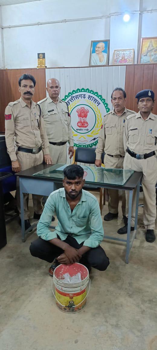 वृत्त अकलतरा के अंतर्गत ग्राम परसाही नाला निवासी आरोपी दीपक जगत (उम्र 23 वर्ष, पिता मानसिंह जगत) के रिहायशी मकान पर दबिश दी गई। इस दौरान विभागीय टीम ने मौके से 09 लीटर हाथभट्ठी महुआ शराब जब्त की। आरोपी के विरुद्ध आबकारी अधिनियम की धारा 34(2) एवं 59(क) के अंतर्गत अपराध पंजीबद्ध कर उसे जेल दाखिल कर दिया गया।