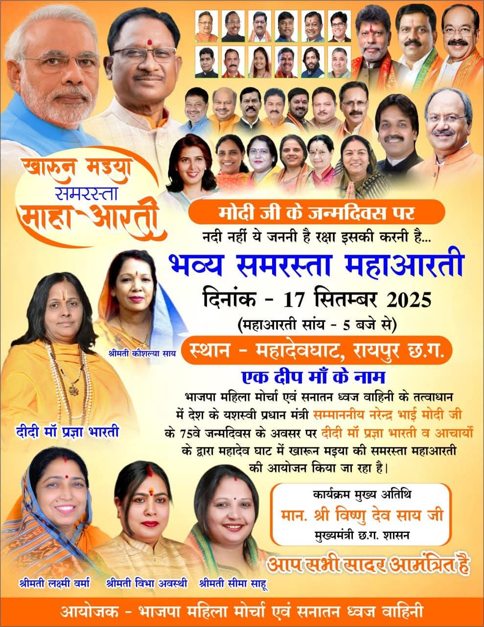 रायपुर महादेव घाट में प्रधानमंत्री नरेंद्र मोदी के जन्मदिन पर भव्य समरसता महाआरती का आयोजन