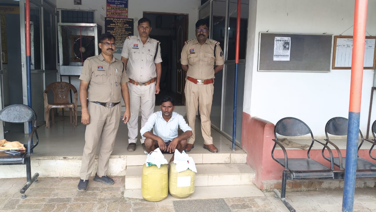 अवैध महुआ शराब बिक्री के मामले मे आरोपी गिरफ्तार, कुल 40 लीटर महुआ शराब कीमती 8000/- रुपये किया गया बरामद।।