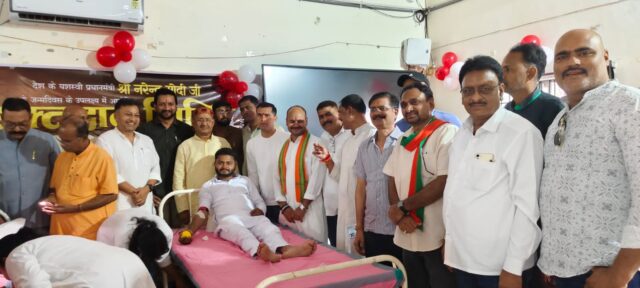 भव्य रक्तदान शिविर का आयोजन किया गया तथा प्रधानमंत्री नरेंद्र मोदी के उद्बोधन का लाइव प्रसारण भी किया गया। रक्तदान शिविर के प्रभारी अंशुल श्रीवास्तव ने जानकारी दी कि अंबिकापुर एवं सीतापुर मंडल के कार्यकर्ताओं एवं आमजनों ने मिलकर कुल 57 यूनिट रक्तदान किया। युवा मोर्चा सेवा पखवाड़ा के आगामी दिनों में 75 यूनिट रक्तदान के लक्ष्य को पूरा करेगा।
