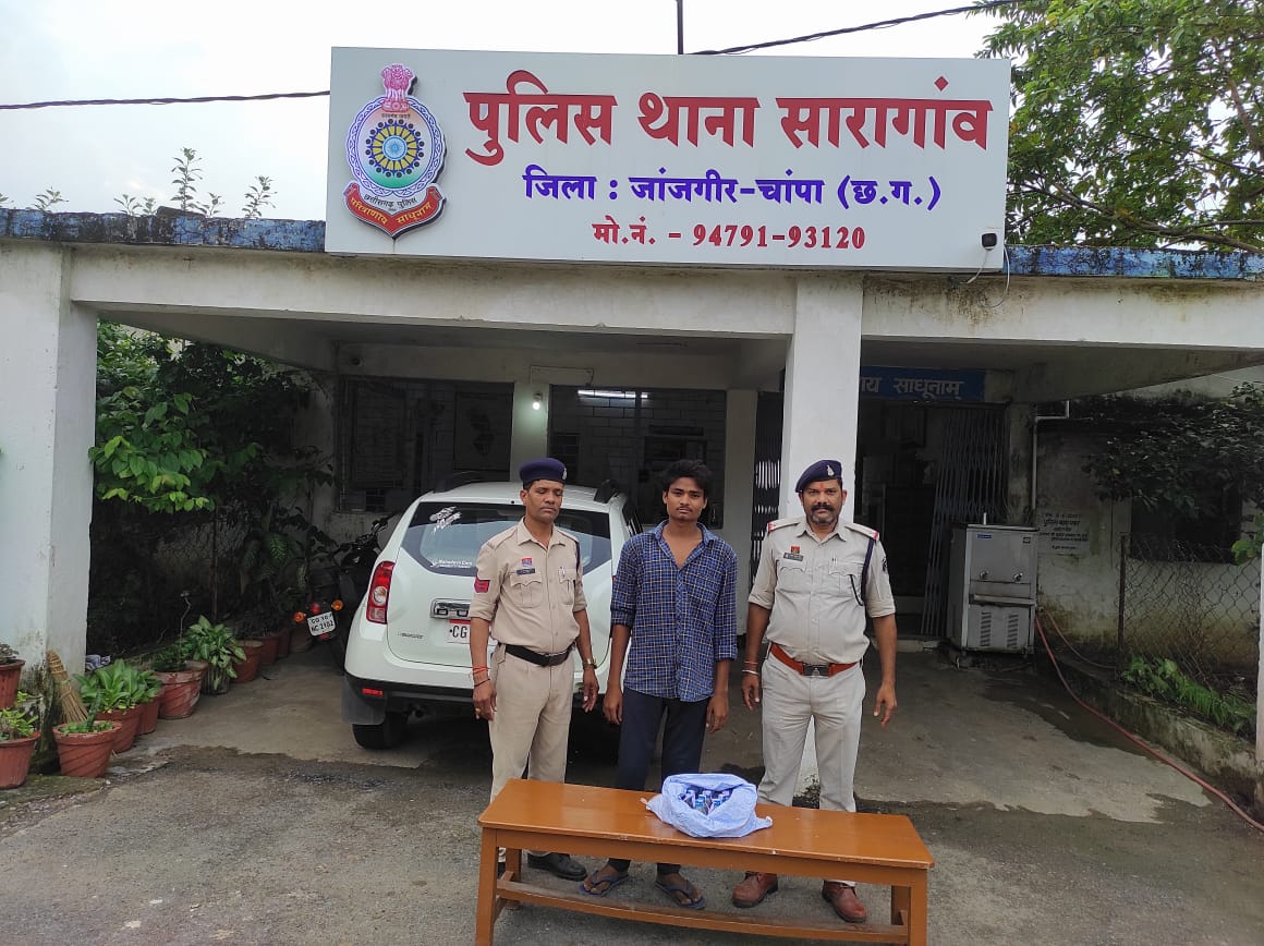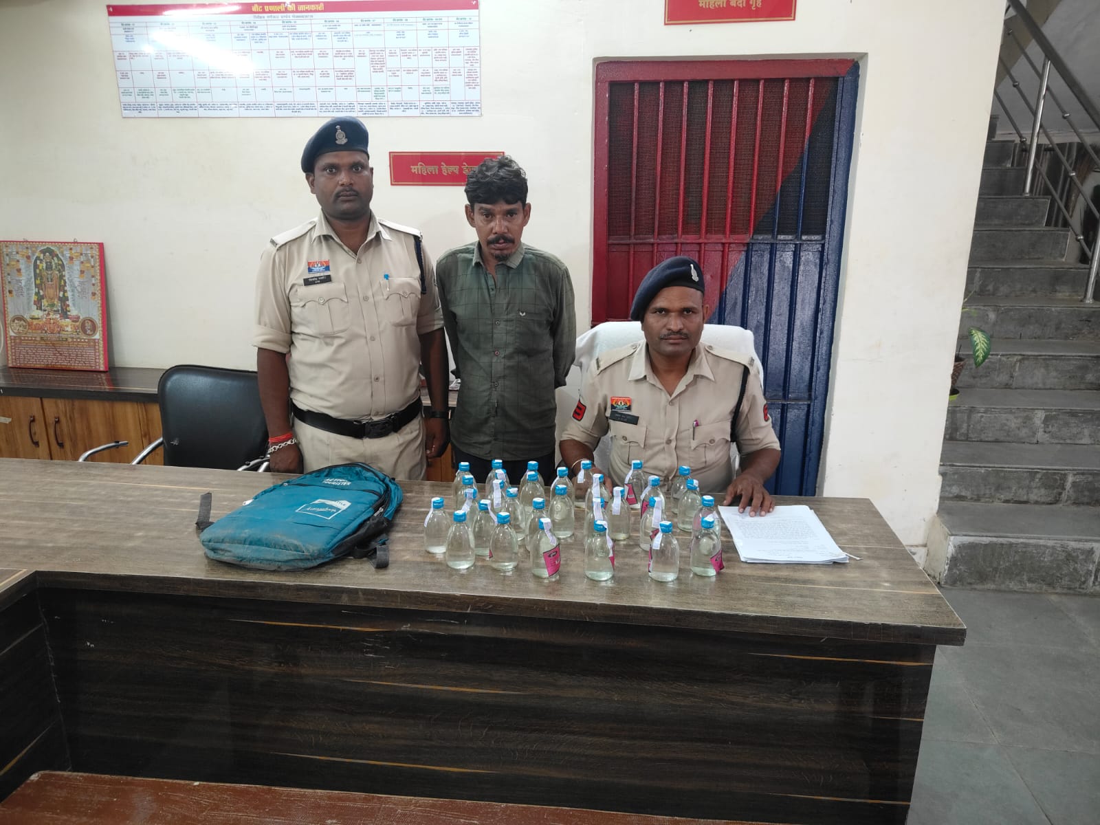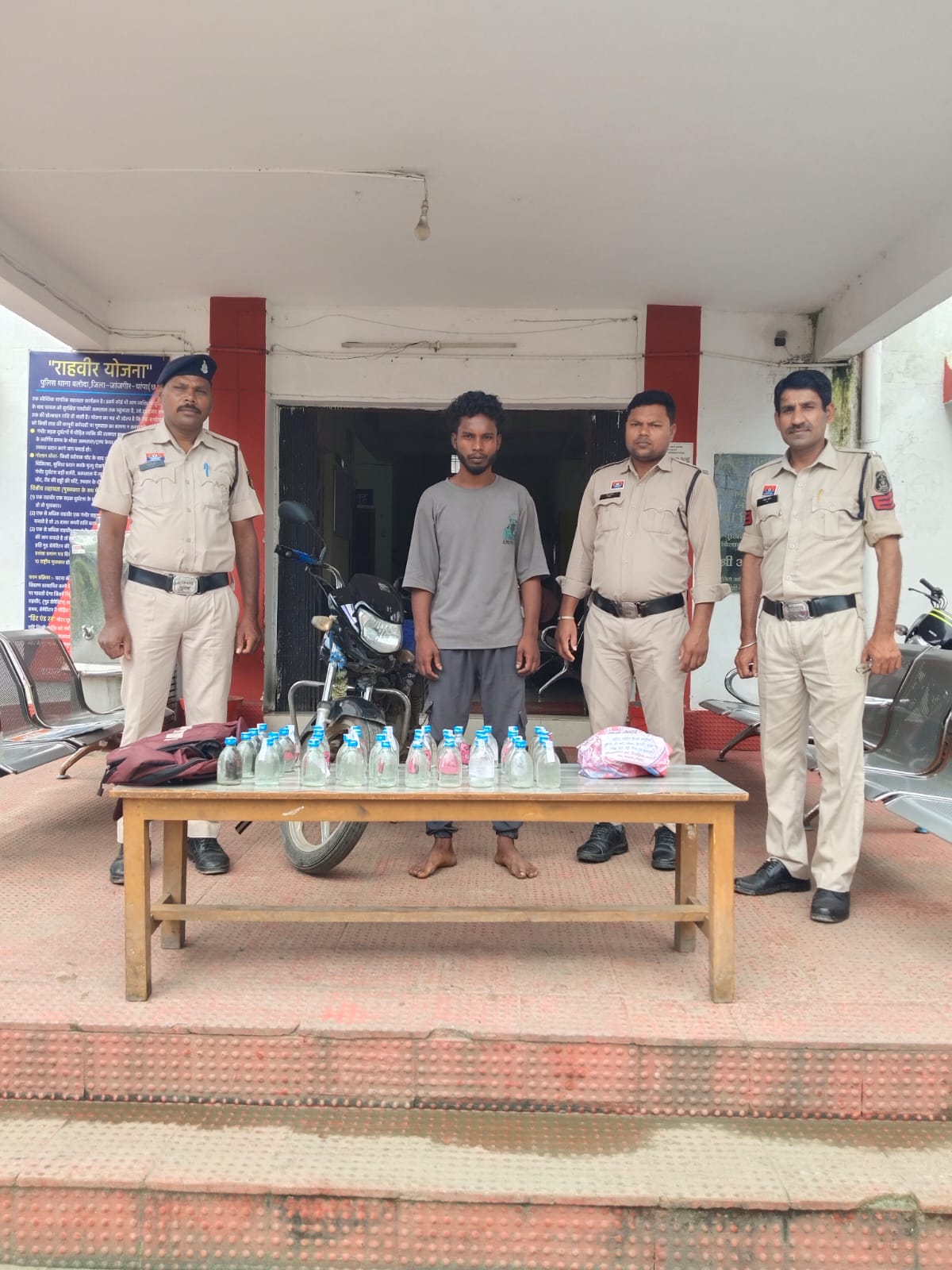 थाना सारागांव पुलिस ने करन यादव (19 वर्ष, निवासी कमरीद) से 6.480 लीटर देशी प्लेन शराब जब्त की।
