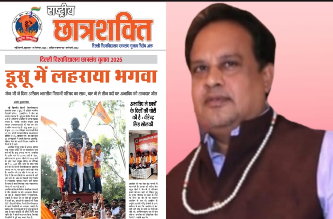 में उनकी आस्था को दिखाता है तो वहीं योगी आदित्यनाथ ने इस ऐतिहासिक जीत की हार्दिक बधाई देते हुए कहा किदिल्ली विश्वविद्यालय छात्र संघ चुनाव में अखिल भारतीय विद्यार्थी परिषद को मिली जीत अभाविप के दर्शन ‘ज्ञान, शील, एकता’ की बढ़ती स्वीकार्यता को समर्पित है। आज विद्यार्थी परिषद के शानदार जीत पर उच्च न्यायालय अधिवक्ता चितरंजय पटेल ने दिल्ली विश्वविद्यालय विद्यार्थी परिषद को बधाई देते हुए कहा कि विद्यार्थी परिषद संस्कारित एवं राष्ट्रवादी छात्र शक्ति का निर्माण करती है जो आगे चलकर विद्यार्थी परिषद के कार्यकर्ता राष्ट्र प्रथम सोच के साथ भारतीय राजनीति में अपना योगदान देते है।