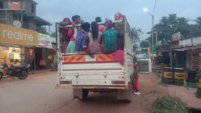छोटे पिकअप वाहनों से ठूंस ठूंस कर ढोए जा रहे हैं मजदूर