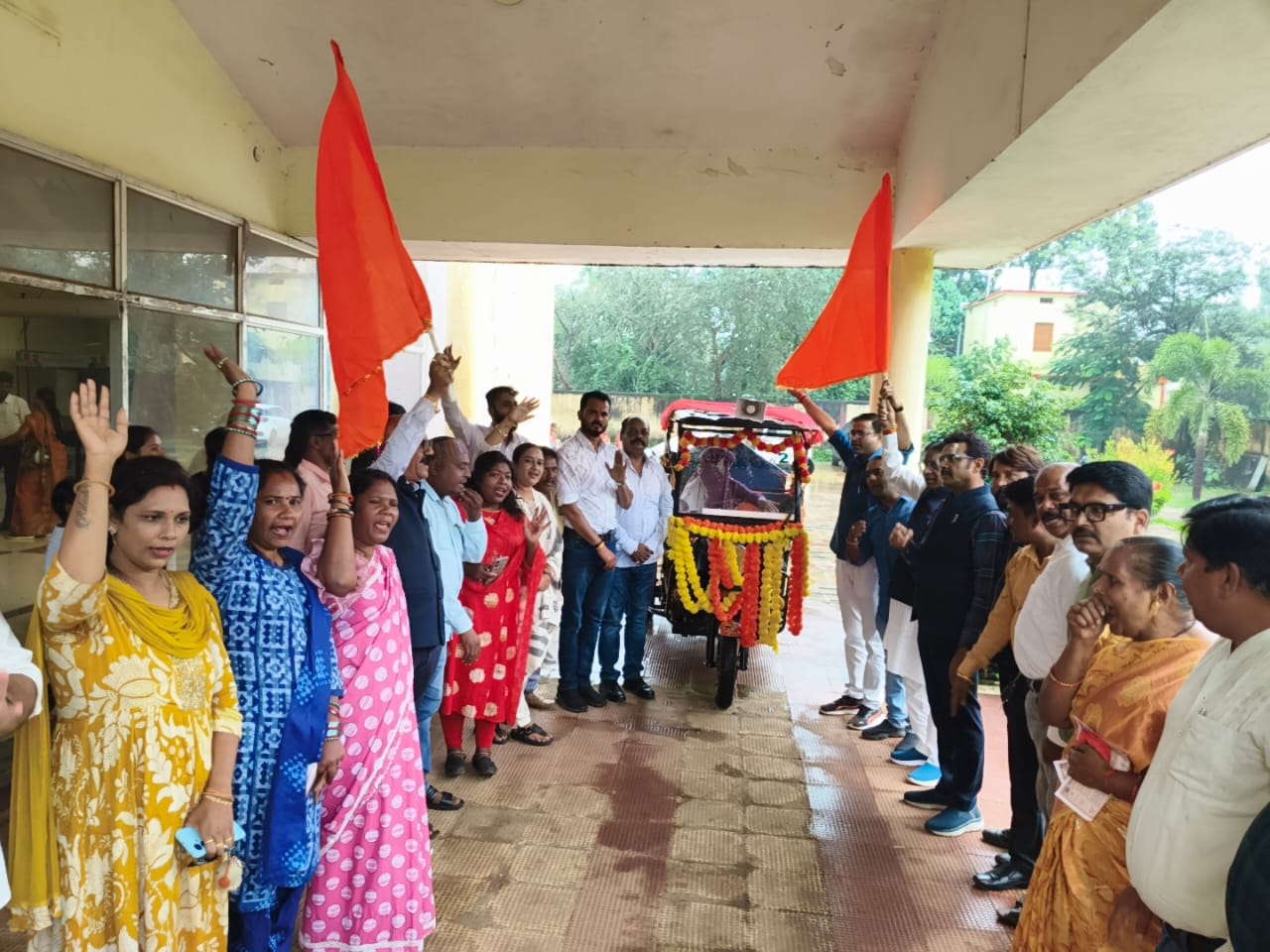 नगर निगम जगदलपुर द्वारा दुर्गा उत्सव के अवसर पर स्वच्छता एवं पर्यावरण संरक्षण की दिशा में एक अभिनव पहल की गई है। नगर के विभिन्न दुर्गा पंडालों व मंदिरो से पूजन सामग्री एकत्र करने हेतु विशेष पूजा सामग्री संग्रहण वाहन (ई-रिक्शा सेवा) का शुभारंभ आज श्यामा प्रसाद मुखर्जी सभागार टाउन हॉल से किया गया। इस अवसर पर महापौर संजय पांडे, नगर निगम अध्यक्ष खेमसिंह देवांगन, एमआईसी सदस्य निर्मल पानीग्राही, राणा घोस, त्रिवेणी रंधारी, योगेंद्र पांडे, संग्राम सिंह राणा, पार्षदगण श्याम सुंदर बघेल, आशा साहू, पूनम सिन्हा, गायत्री बघेल, प्रकाश झा, अविनाश श्रीवास्तव, दिगंबर राव, विक्रम यादव, राजा यादव, स्वच्छता ब्रांड एंबेसडर रतन व्यास, झरना मोहंती, प्रभात चौहान, अनिमेश चौहान, अभिलाष यादव, मनोज ठाकुर आदि उपस्थित रहे।