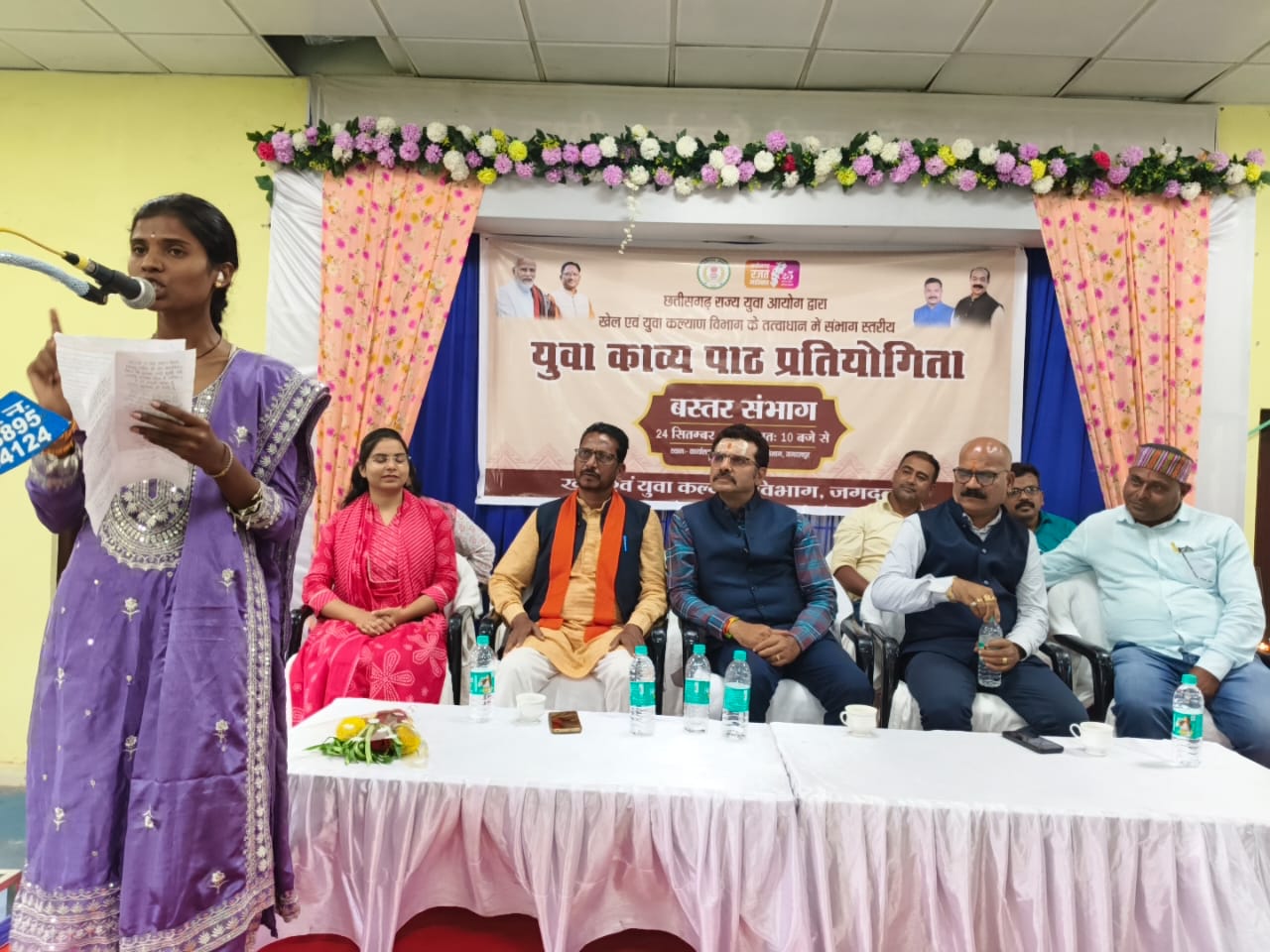 छत्तीसगढ़ राज्य के रजत जयंती महोत्सव के अवसर पर आज राज्य युवा आयोग द्वारा खेल एवं युवा कल्याण विभाग के तत्वावधान में बस्तर संभाग स्तरीय युवा काव्य पाठ प्रतियोगिता का आयोजन किया गया। कार्यक्रम खेल एवं युवा कल्याण विभाग के जगदलपुर कार्यालय परिसर में हुआ। प्रतियोगिता में संभाग के सभी जिलों से आए प्रतिभावान युवा कवियों ने अपनी मौलिक एवं प्रेरणादायी कविताओं का पाठ कर सभी को मंत्रमुग्ध कर दिया। मंच पर देशभक्ति, सामाजिक सरोकार, युवा सशक्तिकरण, पर्यावरण संरक्षण और नई पीढ़ी के उज्जवल भविष्य जैसे विषयों पर प्रस्तुत कविताओं ने श्रोताओं की खूब सराहना बटोरी। कार्यक्रम के दौरान महापौर संजय पांडे ने स्वरचित कविता- युवा हैं हम, जोश और ऊर्जा की नहीं हममें कमी, आओ हम सब मिलकर नए भारत के निर्माण में सहचर बनें, ये जवानी, हमारी रचनाएं ऊर्जा देश के काम आए, नई पीढ़ी में जोश जगाए। प्रतिभागियों का उत्साहवर्धन करते हुए महापौर संजय पाण्डेय ने कहा कि कविता समाज के विचारों को अभिव्यक्त करने का सशक्त माध्यम है। इस तरह की प्रतियोगिताएं न केवल युवाओं में साहित्यिक अभिरुचि को प्रोत्साहित करती हैं, बल्कि उन्हें समाज के प्रति संवेदनशील और जागरूक नागरिक बनने के लिए भी प्रेरित करती हैं।