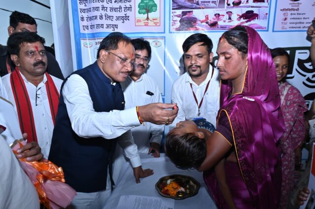 10वाँ आयुर्वेद दिवस के अवसर पर जिला आयुष विभाग धमतरी के सानिध्य में ग्राम बड़ी करेली में एक भव्य कार्यक्रम का आयोजन किया गया। इस अवसर पर छत्तीसगढ़ राज्य के मुख्यमंत्री माननीय विष्णुदेव साय ने स्वर्ण प्राशन संस्कार के तहत ग्राम बड़ी करेली की बालिका प्रीति निर्मलकार (पिता टिकेश्वर निर्मलकार, माता श्रीमती डिगेश्वरी निर्मलकार) को अपने करकमलों से आयुर्वेद स्वर्ण प्राशन ड्रॉप पिलाकर शुभारंभ किया,कार्यक्रम में उप मुख्यमंत्री विजय शर्मा, राजस्व एवं उच्च शिक्षा मंत्री टंक राम वर्मा, कुरूद विधायक अजय चंद्राकर, तथा सांसद श्रीमती रूप कुमारी चौधरी की गरिमामयी उपस्थिति रही।
