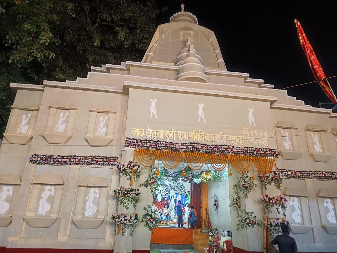 इसी कड़ी में नगर के नव चेतना दुर्गा पूजा समिति द्वारा विशाल एवं आकर्षक पंडाल का निर्माण किया गया है, जो लोगों के लिए मुख्य आकर्षण का केंद्र बना हुआ है। विद्युत सज्जा और भव्य कलाकृतियों से सुसज्जित यह पंडाल नवरात्र की आस्था और उत्साह को और अधिक दिव्यता प्रदान कर रहा है।