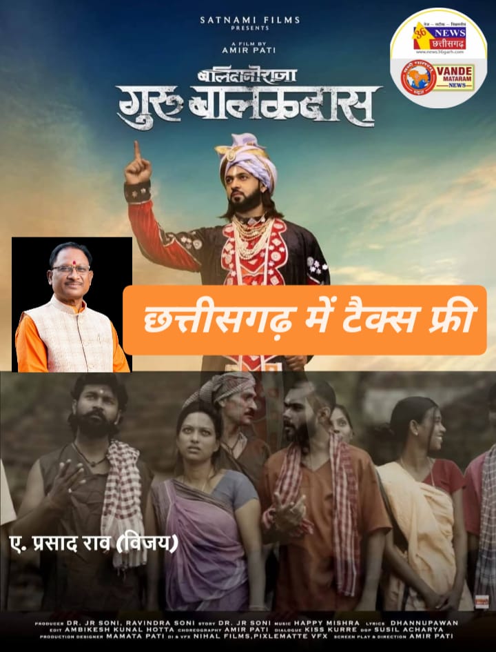 रायपुर। राजधानी रायपुर स्थित अंबुजा मॉल के सिनेमाघर में सोमवार को मुख्यमंत्री विष्णुदेव साय ने छत्तीसगढ़ी फिल्म “बलिदानी राजा गुरु बालकदास” का अवलोकन किया। इस अवसर पर विधानसभा अध्यक्ष डॉ. रमन सिंह, कैबिनेट मंत्री गुरु खुशवंत साहेब, विधायक डोमनलाल कोर्सेवाडा, विधायक रोहित साहू, धर्मगुरु गुरु बालदास साहेब सहित अनेक जनप्रतिनिधि एवं सतनामी समाज के गणमान्य नागरिक मौजूद रहे।फिल्म देखने के बाद मुख्यमंत्री साय ने कहा कि यह सिनेमा साहस, शौर्य और बलिदान की अमूल्य गाथा है।