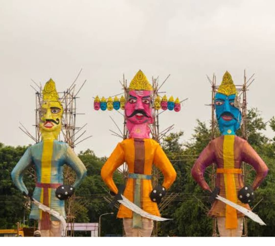 रावण, मेघनाद और कुंभकर्ण के पुतले आकर्षण का केंद्र