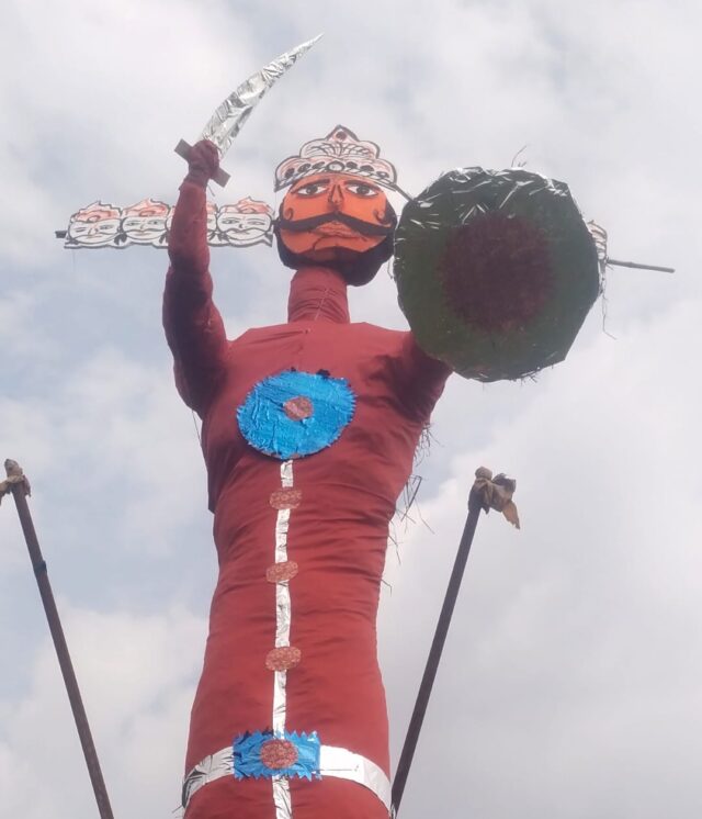 बिलाईगढ़ विकासखंड क्षेत्र के आदर्श ग्राम पंचायत बालपुर में हर वर्ष की तरह इस साल भी 40 फीट रावण का पुतला बनाया जा रहा है। विजयादशमी के दिन आकर्षक आतिशबाजी के साथ रावण के पुतले का दहन होगा। ठाकुद देवा पारा ग्राम पंचायत बालपुर के आयोजन में इस वर्ष रावन दहन किया जा रहा है। मुख्य आतिथ्य पूर्व विधायक संसदीय सचिव चंद्रदेव राय तथा सरपंच रोशन कुर्रे अध्यक्षता करेंगे विशेष अतिथि उपसरपंच, पंच गण एवं गांव के सभी प्रमुख शामिल होंगे।। जिसमें आज असत्य पर सत्य का विजय होगा,बुराई का हार होगा और सच्चाई का जीत होगा। इसी बीच पुतले का निरीक्षण करने बिलाईगढ पुर्व विधायक संसदीय सचिव चन्द्रदेव राय पहुंचे। रावण दहन के बाद नाइट शो के रुप में जानें मानें जशगीत गायक मनोज आडिल 40 लोगों के साथ ठाकुरदेवा पारा मां दुर्गा पंडाल में अपने मधुर आवाज़ से रौनक बिखेरेंगे नवदुर्गा युवा कल्याण समिति ठाकुरदेवा पारा के सदस्यों ने क्षेत्र के सभी आसपास गांववासियों को रावण दहन व प्रोग्राम में आने के लिए आमंत्रित किया गया ।