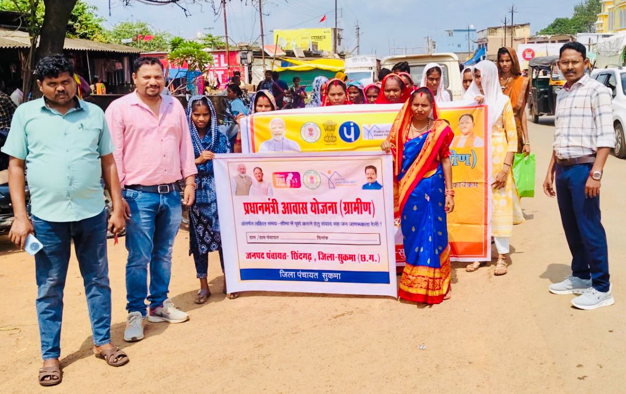 सुकमा/ प्रधानमंत्री आवास योजना (ग्रामीण) के प्रभावी क्रियान्वयन और आमजन को जागरूक करने हेतु आज जनपद पंचायत छिंदगढ़, जिला सुकमा में भव्य जनजागरूकता रैली का आयोजन किया गया। रैली का उद्देश्य वित्तीय वर्ष 2024-25 के अंतर्गत लंबित आवासों के त्वरित पूर्णता को सुनिश्चित करना और ग्रामीण परिवारों में पक्के घरों के प्रति जनजागरूकता बढ़ाना रहा।