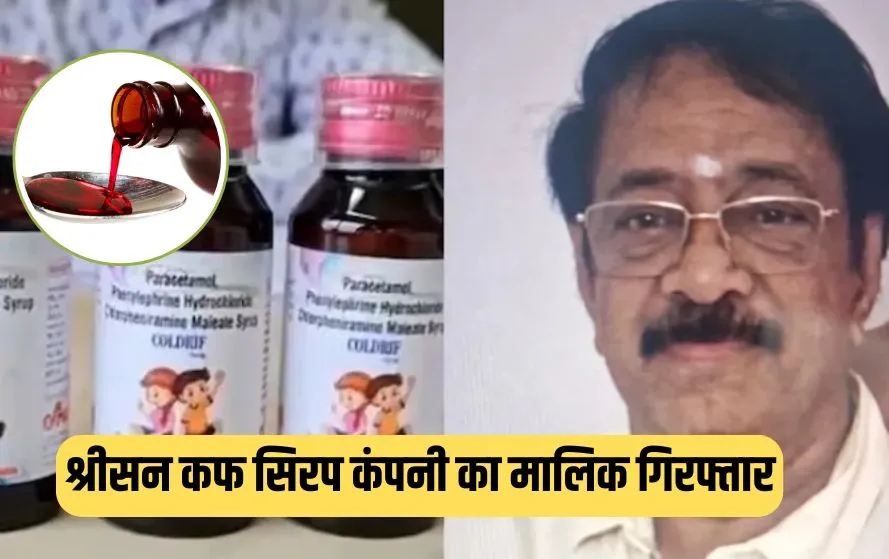 मध्य प्रदेश पुलिस ने कफ सिरप से हुई बच्चों की मौत के मामले में बड़ी कार्रवाई करते हुए जहरीली दवा Coldrif कफ सिरप बनाने वाली कंपनी श्रीसन फार्मा के मालिक को गिरफ्तार कर लिया है। मध्य प्रदेश पुलिस की एसआईटी ने रंगनाथन को चेन्नई गिरफ्तार किया है। कफ सिरप से हुई मौतों के मामले में रंगनाथन की तलाश थी। उस पर इनाम भी घोषित किया गया था। मध्य प्रदेश पुलिस ने चेन्नई पुलिस के सहयोग से रंगनाथन  को गिरफ्तार किया।