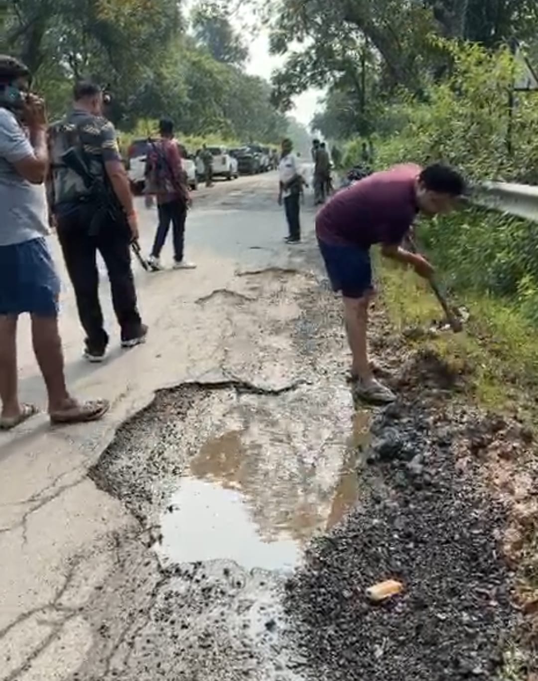 भोपालपटनम। पूर्व वन मंत्री महेश गागड़ा द्वारा राष्ट्रीय राज मार्ग क्रमांक 63 के गड्ढों को भरने वाली तस्वीर सोशल मीडिया में वायरल होने के बाद उस पर तीखी प्रतिक्रियाएं आने लगी हैं।