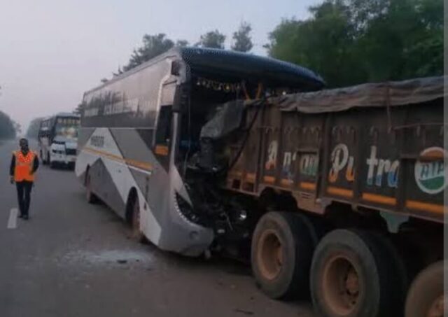 प्रत्यक्षदर्शियों के अनुसार बस तेज रफ्तार में थी और सुबह के वक्त घना कोहरा छाया हुआ था। धुंध के कारण दृश्यता बेहद कम होने से चालक को सड़क किनारे खड़ी ट्रक दिखाई नहीं दी और बस सीधे ट्रक के पिछले हिस्से से जा भिड़ी। टक्कर इतनी जबरदस्त थी कि बस का अगला हिस्सा बुरी तरह क्षतिग्रस्त हो गया और कई यात्रियों को खिड़की और सीटों के बीच फंसना पड़ा।