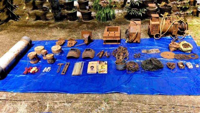 आंध्र-ओडिशा सीमा पर सिलुरु थाना क्षेत्र में डीवीएफ के जवानों की छापेमारी में कई अर्धनिर्मित बंदूकें, मरम्मत के उपकरण, और हथियार बनाने की पूरी सामग्री बरामद की गई, इसके साथ ही नक्सलियों द्वारा छिपाई गई तीन बारूदी सुरंगें जिनका वजन तीन, दो और एक किलो है, उसे भी जब्त की गईं है. यही नहीं पांच डेटोनेटर, कॉडेक्स वायर, वेल्डिंग मशीन, जनरेटर और वेल्डिंग रॉड जैसे उपकरण भी बरामद किए गए हैं.