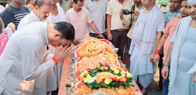 कोरबा। छत्तीसगढ़ विधानसभा के पूर्व उपाध्यक्ष और जनसेवा की मिसाल स्वर्गीय श्री बनवारी लाल अग्रवाल (बनवारी भैय्या) को आज दोपहर मोती सागर पारा मुक्तिधाम में अंतिम विदाई दी गई। तिरंगे में लिपटी उनकी पार्थिव देह को अंतिम यात्रा से पहले परिजनों, शुभचिंतकों, शहरवासीयो और अनेक राजनीतिक दलो से आये जनप्रतिनिधियो ने नम आंखों से श्रद्धांजलि अर्पित की।