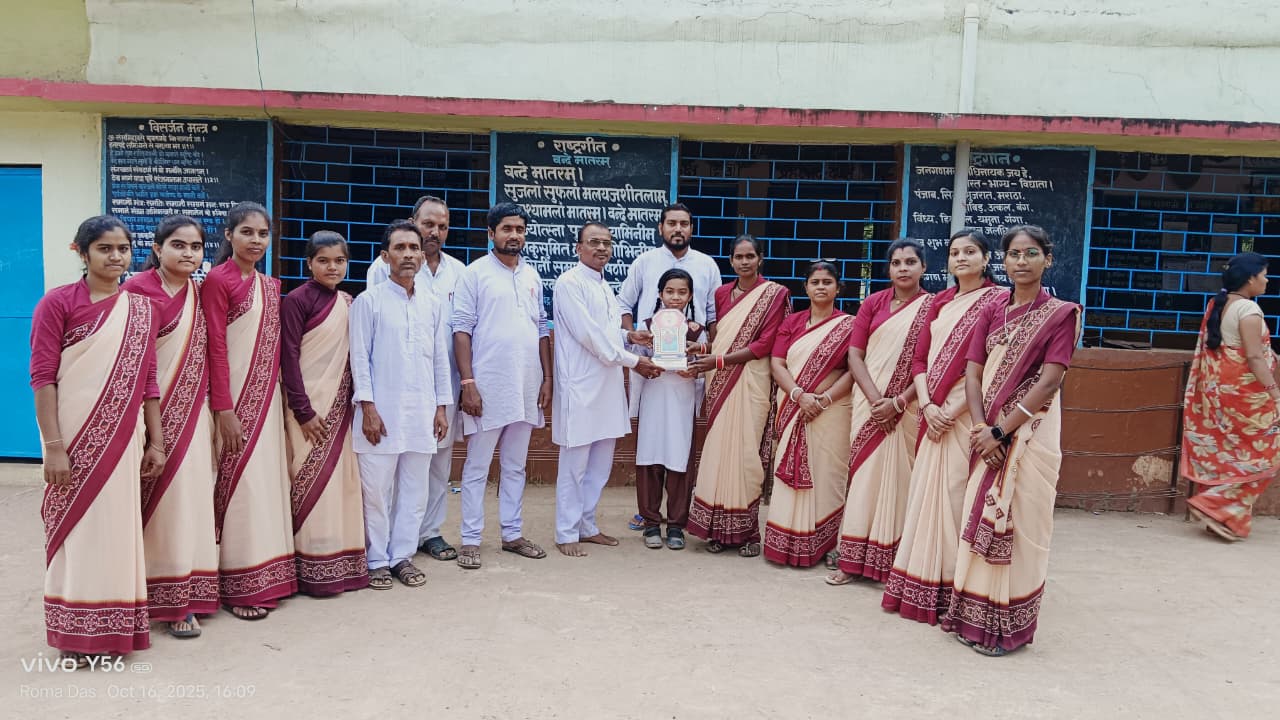 सरस्वती शिशु मंदिर कोसरंगी के कक्षा षष्ठ के छात्रा कु खुशबू के विगत दिनों मध्यप्रदेश के देवास में हुवे ग्राम भारती द्वारा आयोजित संस्कृति महोत्सव में क्षेत्र का प्रतिनिधित्व किया जहा पर प्रथम स्थान प्राप्त कर आगामी दिनों में होने वाले अखिल भारतीय संस्कृति महोत्सव में प्रतिनिधित्व के लिए अपना नाम दर्ज करा लिए है खुसबू साहु के घर आगमन पश्चात शिशु मंदिर विद्यालय परिवार एवम् संचालक समिति द्वारा प्रतिभा सम्मान समारोह का आयोजन कर सम्मानित किया गया।साथ ही ग्राम भारती के पदाधिकारी गण अध्यक्ष पुना राम वर्मा ,सचिव सुरेंद नशीने ,सह सचिव तोषण लाल साहू, कोशा अध्यक्ष,डोमार वर्मा ,जिला संयोजक मुकेश साहु सदस्य गैंद लाल साहू, प्रधाना चार्य, गंगू राम वर्मा,आचार्य उत्तम ,परमानंद वर्मा साहु,रूपेंद्र साहु,खेमू राम तुरकाने आचार्या श्रीमती बसंती दास,सावित्री तुरकाने सीमा साहु, दुर्गेश्वरी पाल कुमारी प्रतिभा साहु लक्ष्मी साहु,रोमा दास,पार्वती साहु ,शकुंतला निषाद ,आया खिलेश्वरी साहु आदि ने विजेता के पिता कुंज बिहारी साहू,माता लीला साहु को भी बधाई दिया जिनके सुपुत्री कु खुशबू साहु ने अपने पालक के साथ साथ संस्था तथा क्षेत्र का नाम रोशन किया है एवम् उनके उज्वल भविष्य की कामना की है ।।