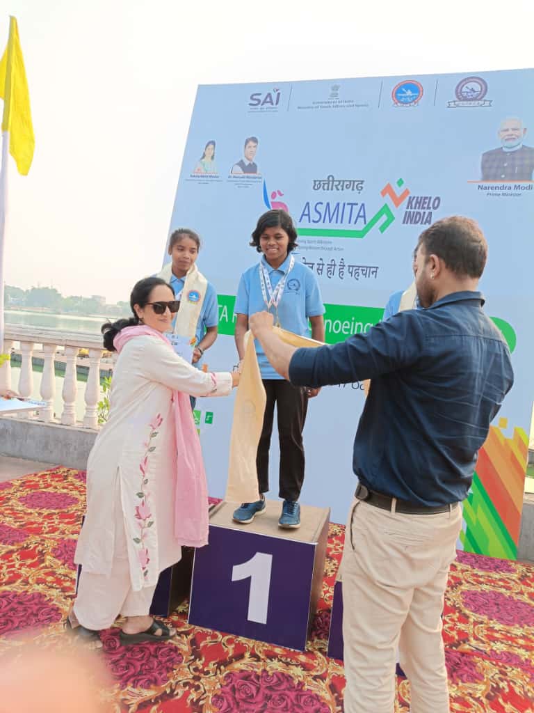 कयाकिंग एवं कैनोइंग के.-1 महिला सीनियर 1000 मीटर में सोनम पुजारी ने ब्रॉन्ज मेडल, सी-1 महिला सीनियर 1000 मीटर मर मानमती बघेल ने गोल्ड मेडल, के-1 जूनियर महिला 1000 मीटर में सोनम पुजारी ने गोल्ड मैडल, मुस्कान ने सिल्वर मैडल, कंचन ने ब्रॉन्ज मैडल जीते हैं। के-1 जूनियर महिला 500 मीटर में सोनम पुजारी ने गोल्ड मैडल, मुस्कान भारती व रौशनी ने ब्रॉन्ज मैडल जीते हैं। के-2 सीनियर महिला 500 मीटर में सोनम पुजारी व मानमती बघेल ने ब्रॉन्ज मेडल, के-1 महिला 200 मीटर में सोनम पुजारी ने ब्रॉन्ज मेडल, सी-1 महिला 200 मीटर में मानमती बघेल ने सिल्वर मेडल और सी-1 सब जूनियर 200 मीटर में ईशा ने सिल्वर एवं मालती कश्यप ने ब्रॉन्ज मेडल जीते।