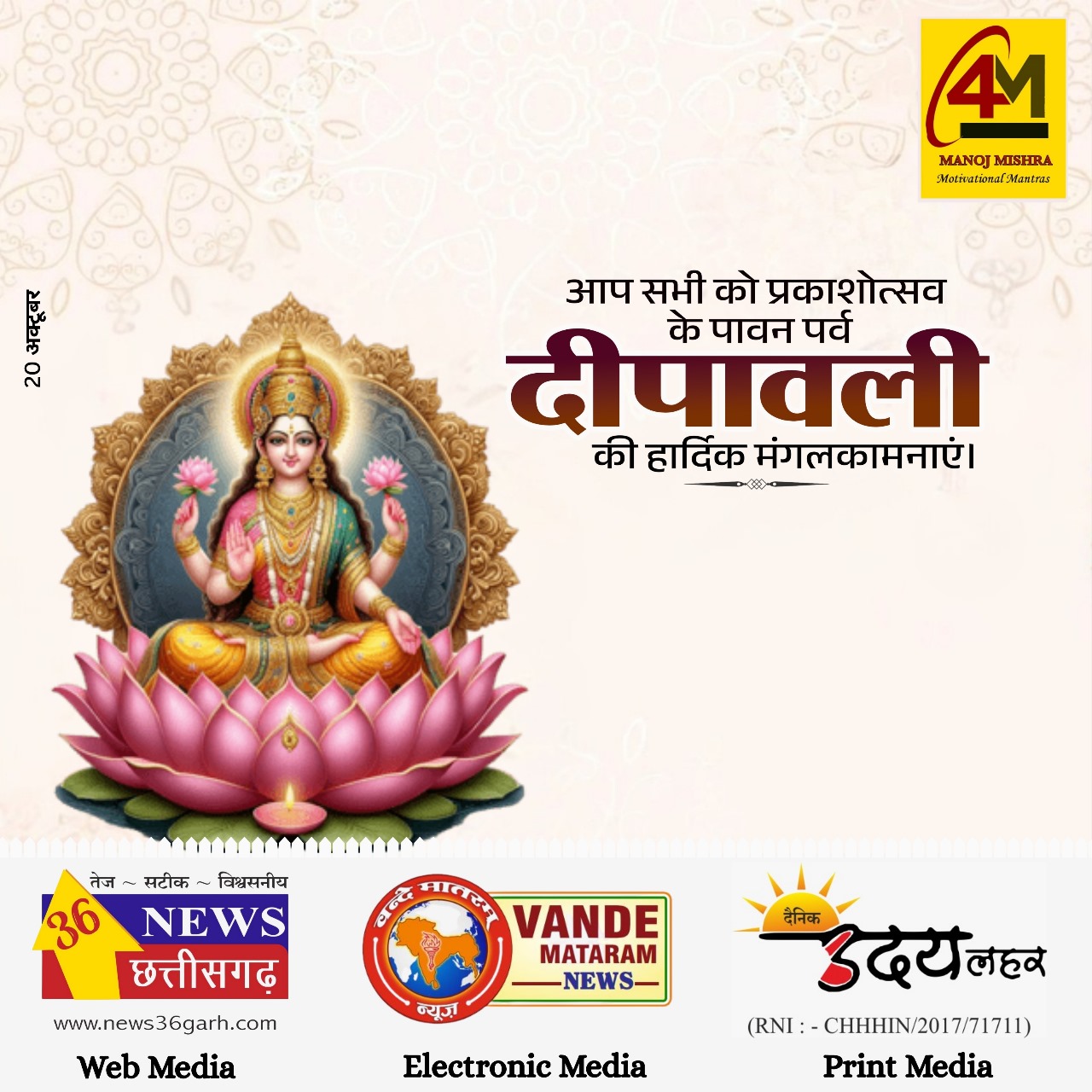 दीपावली पूजन हेतु 20 अक्टूबर दिन सोमवार को शुभ चौघड़िया समय :-